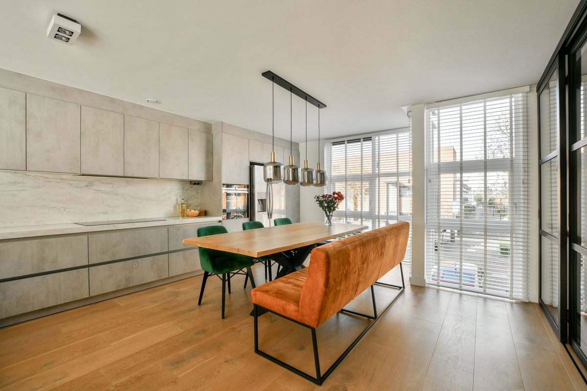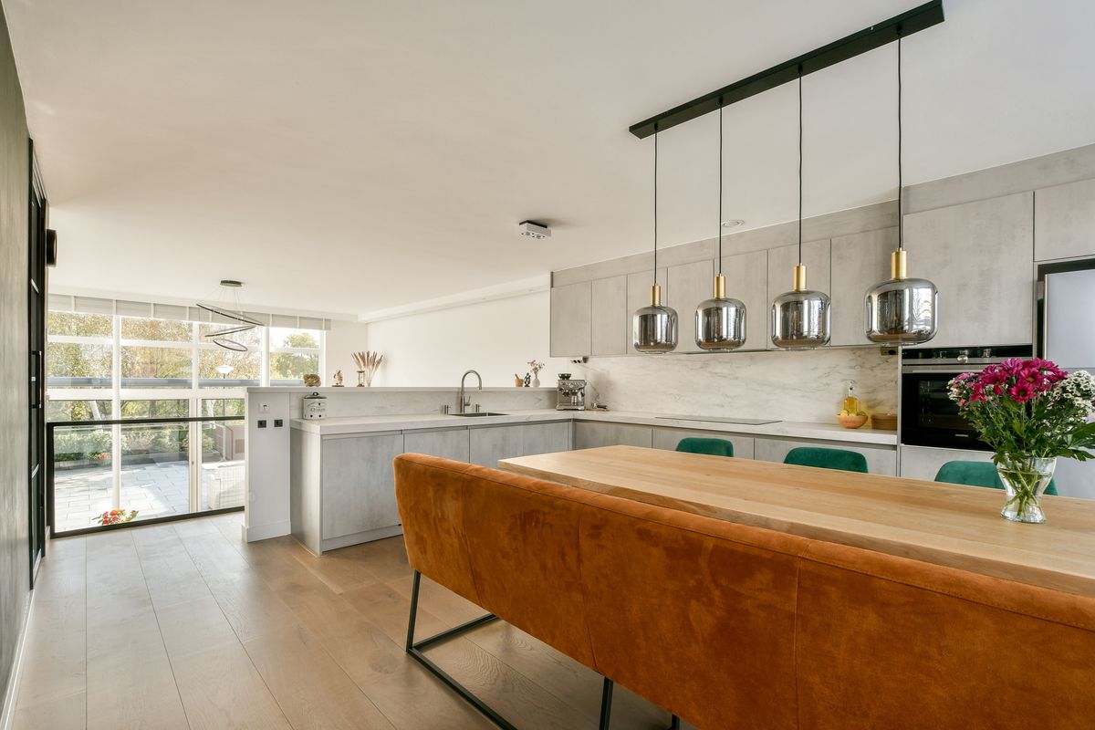 De keuken en al het sanitair zijn in 2021 volledig vernieuwd. De keuken is modern uitgevoerd en voorzien van hoogwaardige inbouwapparatuur, waaronder een Quooker met een 7-liter boiler. De badkamers zijn eveneens in 2021 geplaatst en hebben een luxe uitstraling met mooie materialen en een moderne afwerking. Zowel de woonkamer als de keuken zijn voorzien van een fraaie houten vloer. In de woonkamer zorgen stalen balustrades en trappen voor een bijzonder stijlvol en industrieel accent, terwijl de stalen schuifdeuren bij de keuken perfect aansluiten op de hoogwaardige uitstraling van de woning.