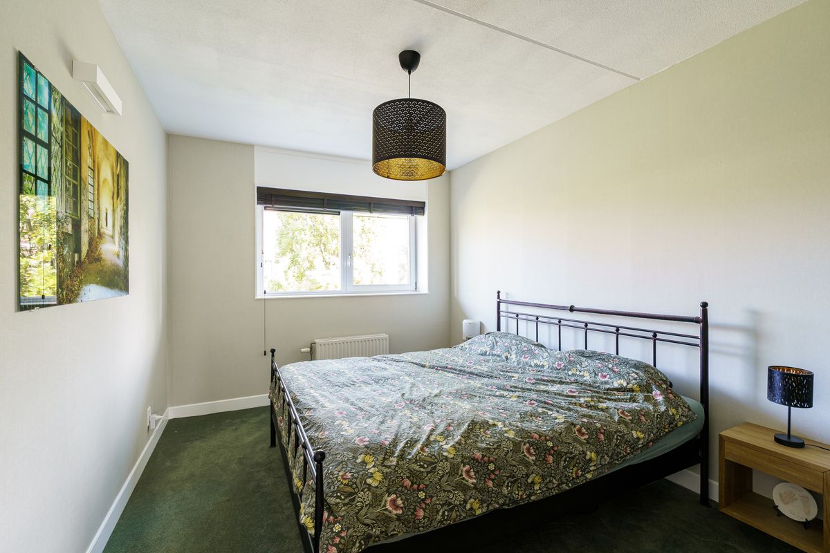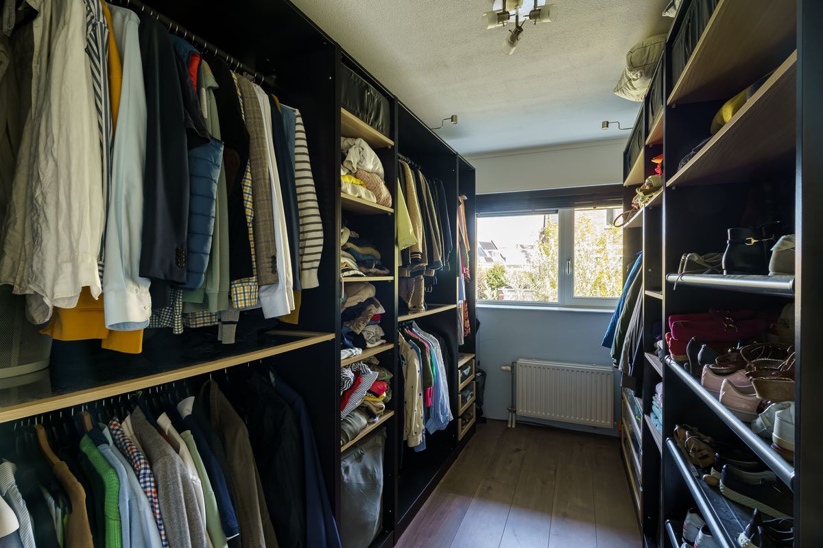 De tweede verdieping biedt een extra grote slaapkamer, ideaal als hoofdslaapkamer, werkkamer of studio. De overloop is prettig licht dankzij een dakraam en biedt ruimte voor de cv-installatie, wasmachine en droger.