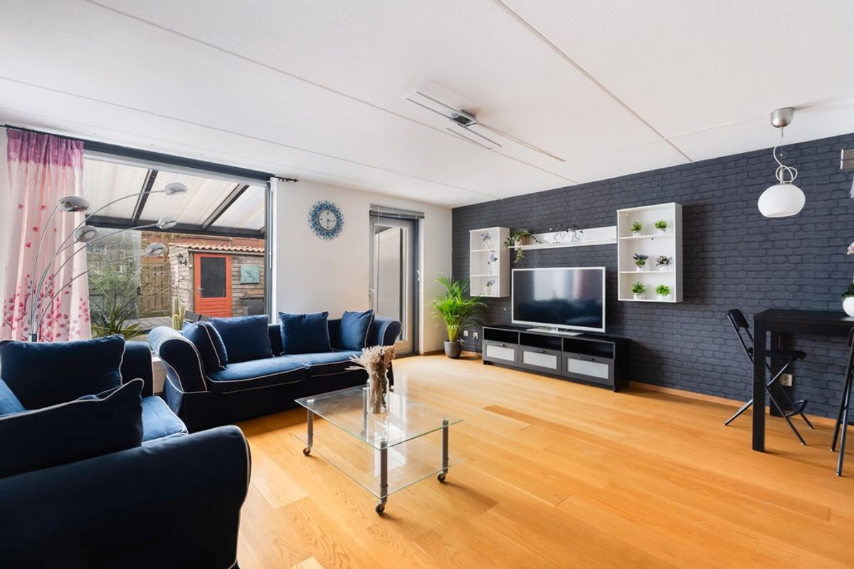 The garden-facing living room of approximately 36 m² immediately feels bright and spacious thanks to the large windows and practical layout. With fibre optic internet and modern finishes, this is a living space designed for comfort. Through the French doors, you access the 15 m² garden room added in 2020, featuring sliding doors and a polycarbonate roof. This conservatory beautifully extends the living room and provides additional space all year round, with a lovely connection to the outdoors.