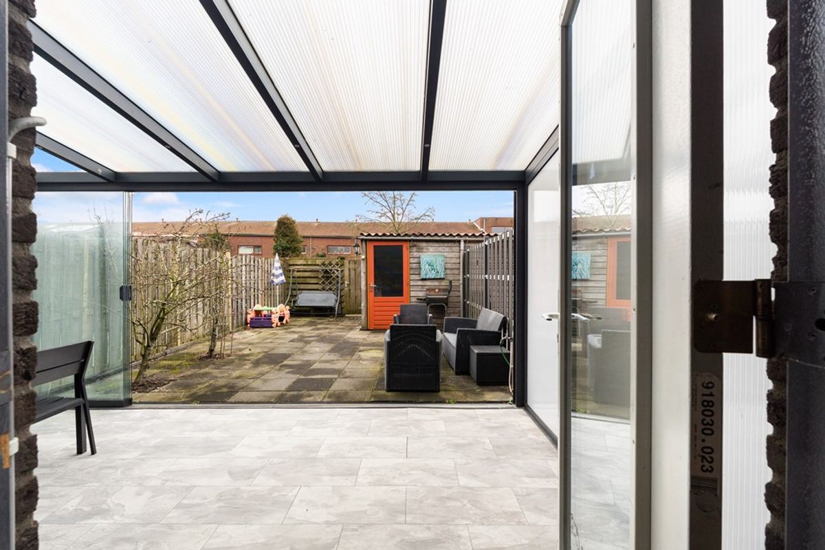 De diepe achtertuin op het zuidoosten betekent zon van ’s ochtends tot in de namiddag. De tuin is onderhoudsvriendelijk aangelegd en beschikt over een grote houten berging. Ook de voortuin is strak en verzorgd. Extra pluspunt: achter de woning ligt een autovrije binnenplaats met speelgelegenheid, ideaal voor kinderen.