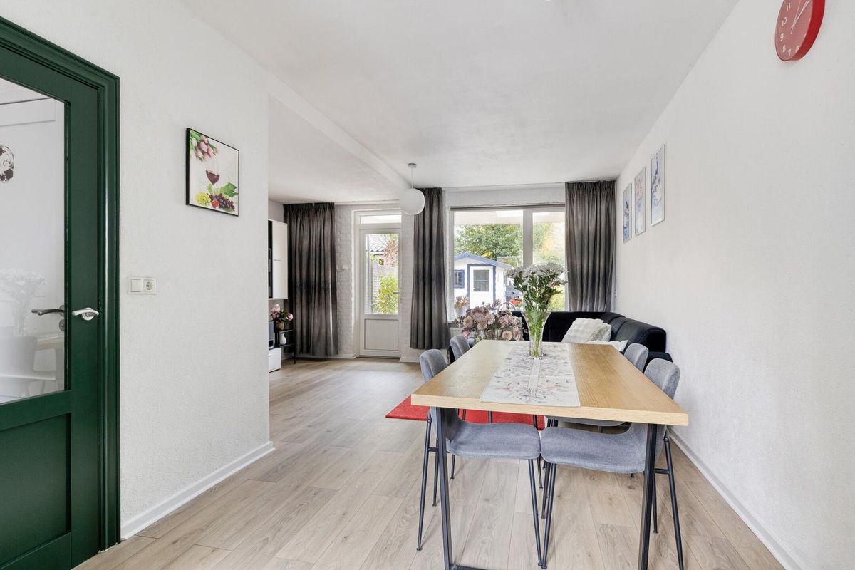 De woonkamer is tuingericht en biedt voldoende ruimte voor een grote zithoek met tv. Tussen het zitgedeelte en de keuken kun je met gemak een royale eettafel kwijt, ideaal voor gezellige diners of spelletjesavonden. Vanuit de woonkamer stap je direct en altijd droog naar buiten onder de royale overkapping — een fijne verlenging van je leefruimte, waar je in elk seizoen kunt genieten van het buiten zijn.