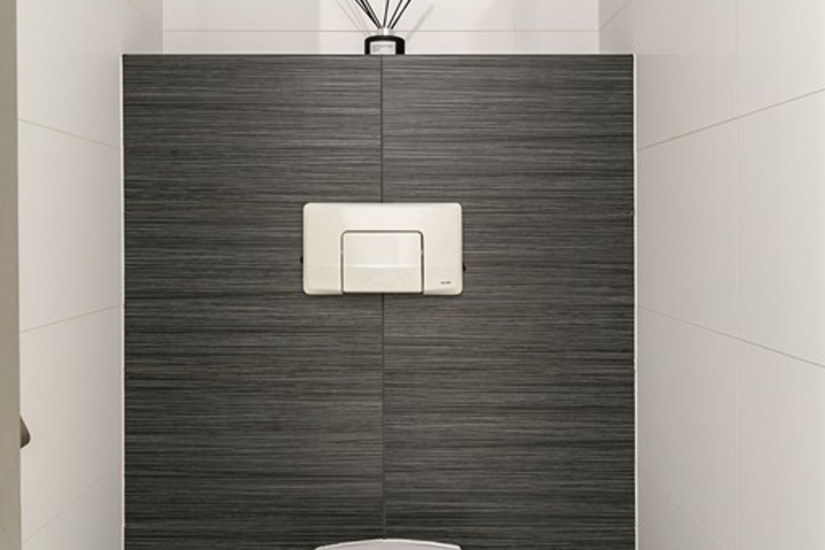 Overloop, separaat betegeld toilet in moderne uitvoering. .