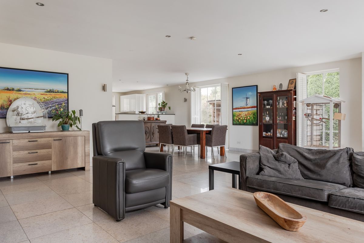 Vrijstaande woning met enorm veel lichtinval en spectaculair uitzicht over de weilanden. Bij binnenkomst zal u het licht en de ruimte direct ervaren. Er is een ruime hal met de trapopgang naar een vide, de ruim 9 meter diepe garage is inpandig te bereiken en openslaande deuren geven toegang tot een riante living met veel lichtinval. Alle ramen tot aan de vloer hebben shutters wat een sfeervolle “touch” aan de woning geeft, er liggen lichte natuurstenen tegels met vloerverwarming, de wanden en het plafond zijn gestuukt. De ruime keuken heeft een kookeiland met bar, veel werkruimte en diverse inbouwapparatuur. Aansluitend een ruime bijkeuken/voorraadkamer en de slaapverdieping telt 5 slaapkamers, waarvan 1 kamer met een groot dakterras, een waskamer, ruime badkamer en tot slot nog een ruime wegzetzolder. De tuin met het uitzicht, meerdere terrassen, een pergola en een groot waterterras is beslist een sellingpoint bij deze woning. Wij zien u graag bij een bezichtiging waar u de sfeer zelf ook kan ervaren!