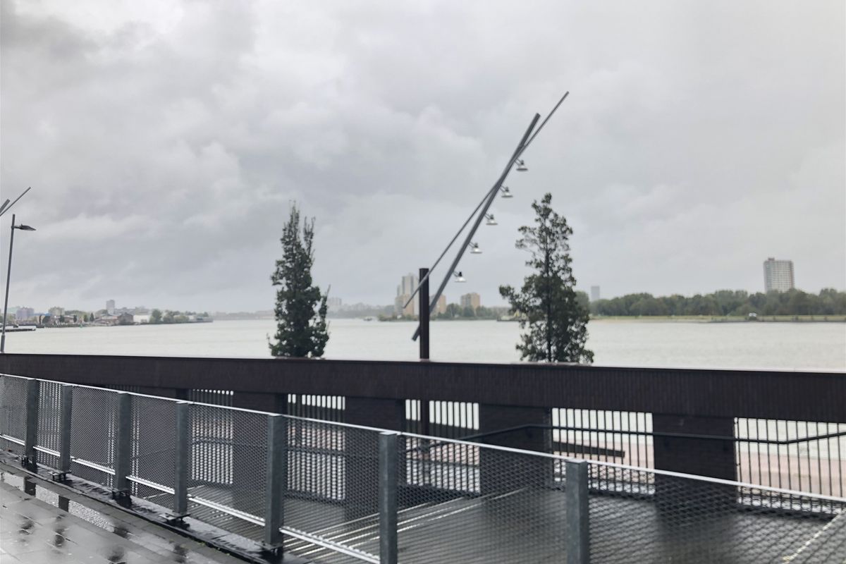 Vanuit de woonkamer heeft u toegang tot het ruime balkon (5,15 x 2,00) waar u heerlijk buiten kunt zitten en rustig kunt genieten van het scheepvaartverkeer op de Nieuwe Maas. Daarnaast kijkt u op de stad Rotterdam wat ook in de avond schitterend uitzicht geeft.