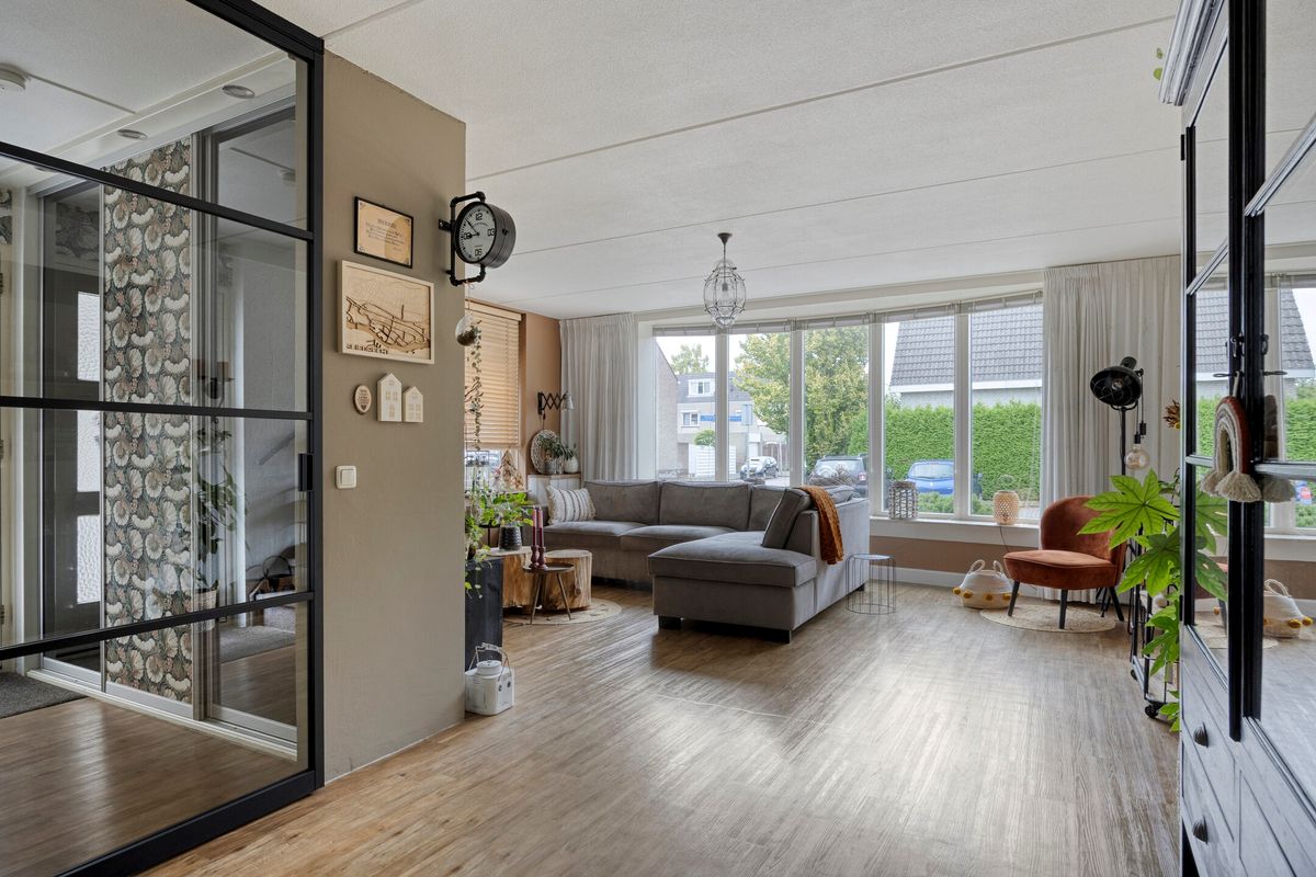 De heerlijk ruime en lichte woonkamer is ruim 10 meter lang en is ingedeeld in een zit- en eetgedeelte. Aan de voorzijde bevindt zich een groot erkerraam en aan de achterzijde heeft u de beschikking over een elektrisch bedienbaar zonnescherm.
