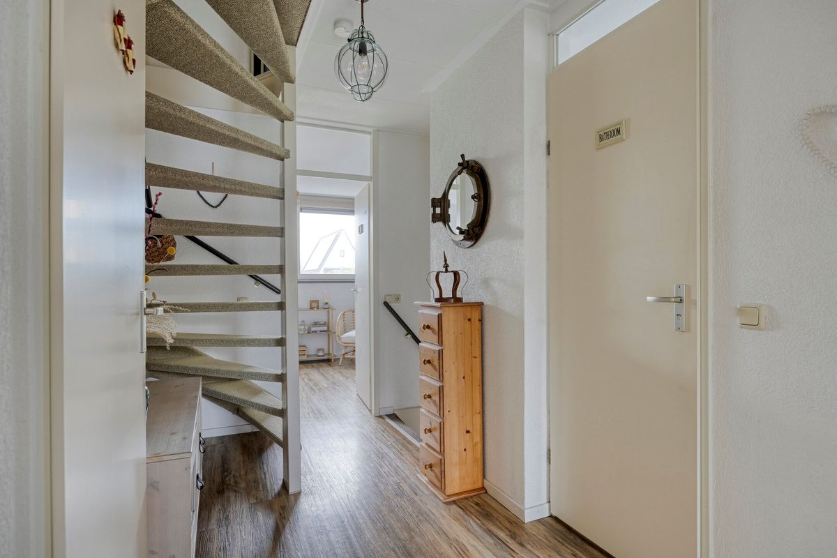 De overloop biedt toegang tot 3 slaapkamers, badkamer en wasruimte. Middels een vaste trap heeft u toegang tot de 2e verdieping. De gehele verdieping is afgewerkt met PVC vloeren. In 2025 is de gehele verdieping voorzien van nieuwe kunststof kozijnen met HR++ beglazing.