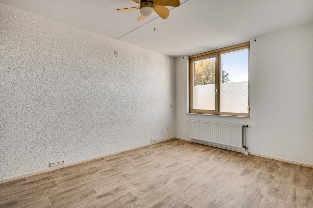 - Slaapkamer 1 (ca. 4,8 x 3 m) met laminaatvloer en rolluik