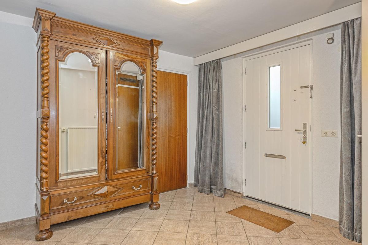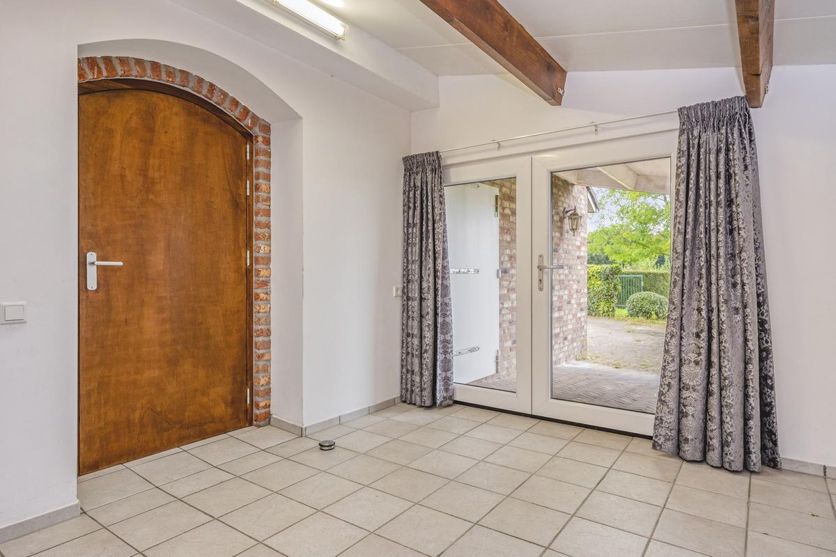De officiële entree is aan de rechterzijde van het fraaie woonhuis, bij de eerste oprit. De ontvangsthal heeft, net als de rest van de begane grond, een ruime opzet. Hier zijn de meterkast en de hardhouten trap naar de eerste verdieping.