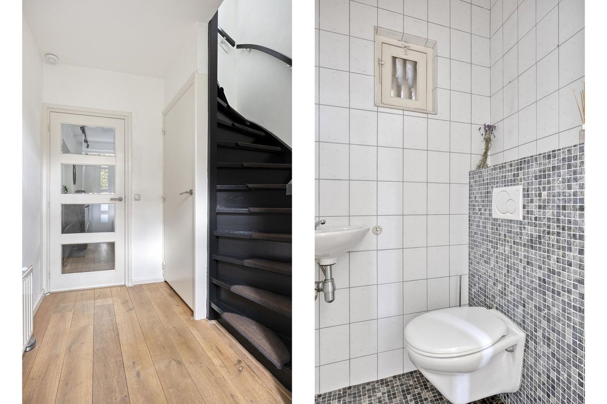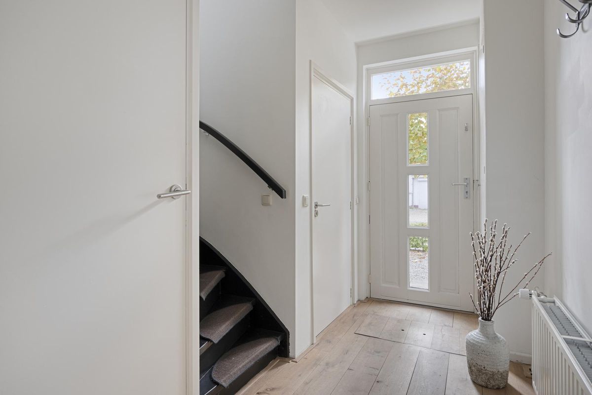 Na het parkeren van de auto op de oprit loop je zo naar de entree van de woning. De hal biedt toegang tot de toiletruimte met wandcloset en fontein, de trapkast, de meterkast en de trapopgang naar de eerste verdieping. Vanuit de hal bereik je de keuken, die in open verbinding staat met de woonkamer.