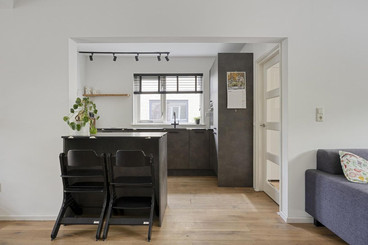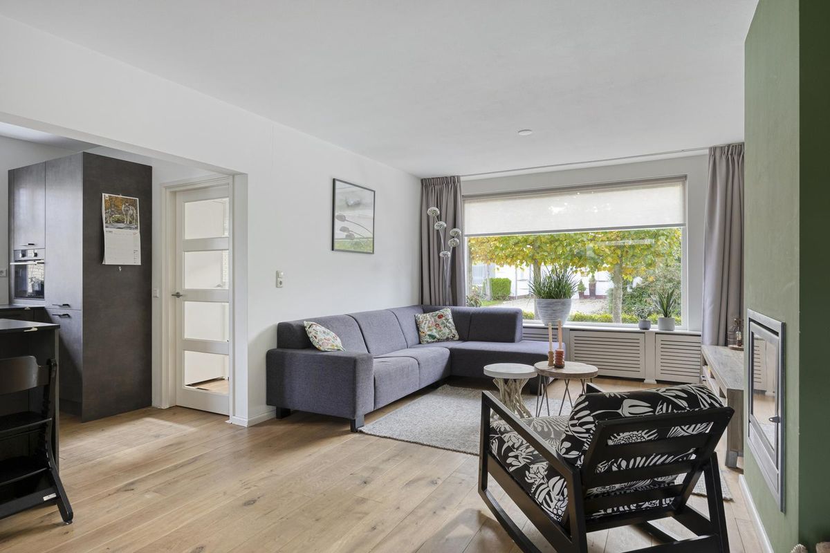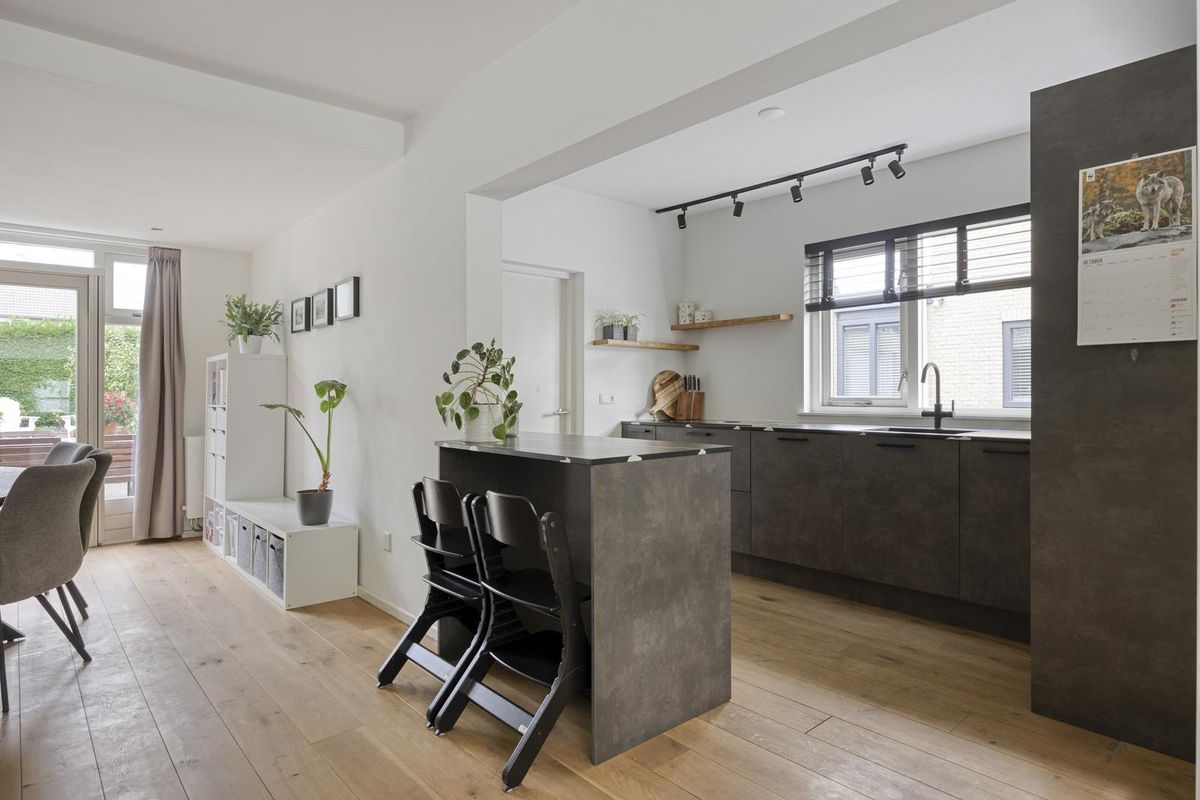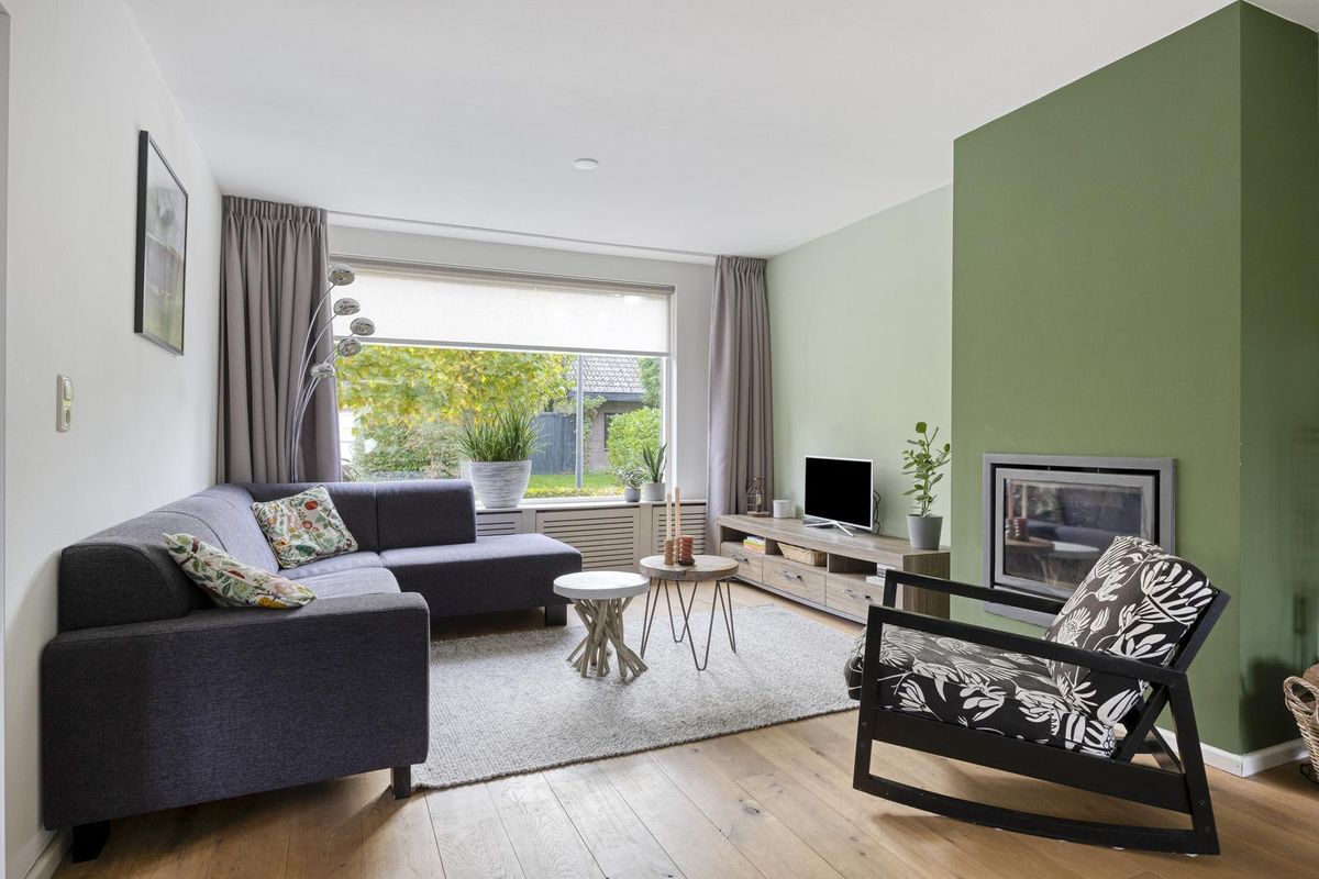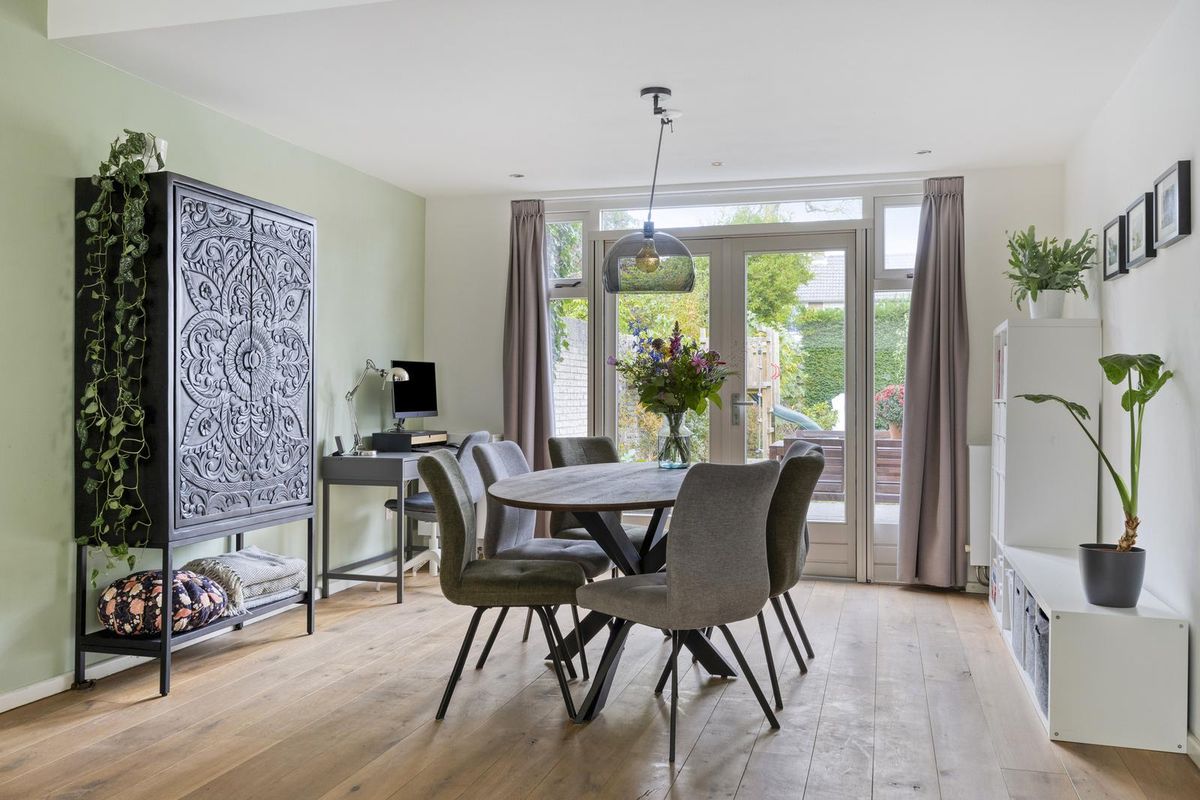 De sfeervolle en ruime woonkamer van circa 36 m² is afgewerkt met een massief houten vloer. De houthaard zorgt voor extra warmte en gezelligheid, waardoor het een fijne plek is om ’s avonds te zitten. Via de openslaande tuindeuren stap je direct de achtertuin in.