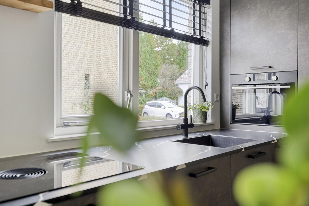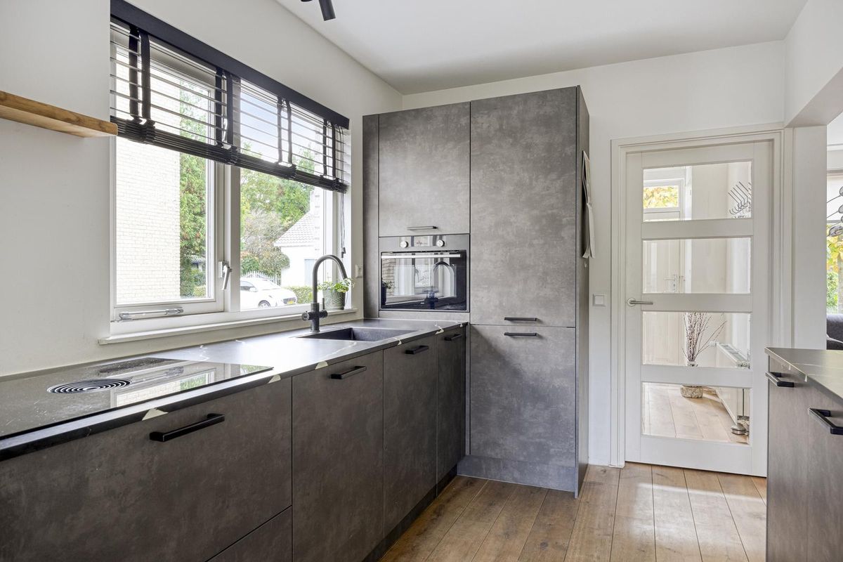 De moderne keuken heeft een hoekopstelling met diverse onderkasten, lades, een 4-pits BORA inductiekookplaat met downdraftafzuiging, een koelkast, een combi oven/magnetron, een vaatwasmachine, een kokend waterkraan, een spoelbak en een composiet blad. Aan de overzijde bevindt zich een gezellige bar met extra kastruimte – een ideale plek voor een snel ontbijt of een drankje tijdens het koken. Via een loopdeur kom je in de bijkeuken.