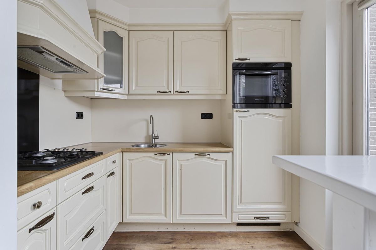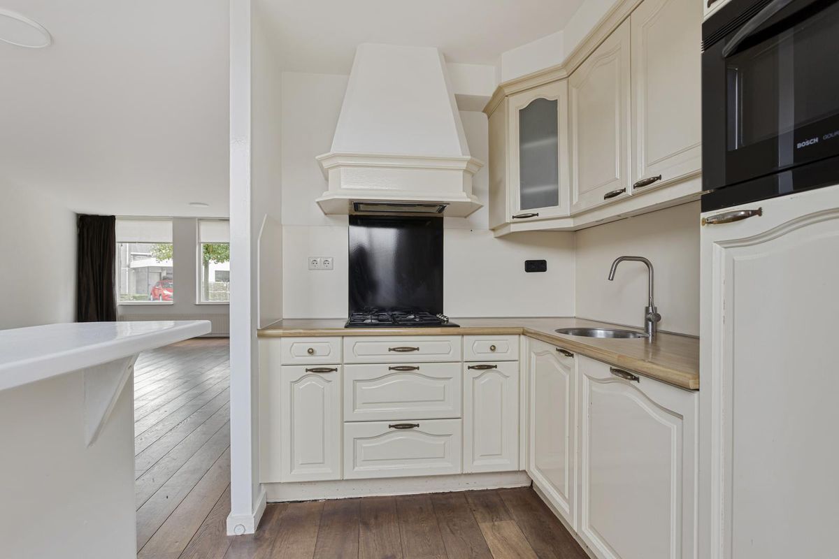 De keuken (circa 2.00 x 2.40 m) is voorzien van een L-vormige keukeninrichting met RVS spoelbak, 4-pits gaskookplaat, geïntegreerde afzuigkap, combimagnetron, vaatwasser (2020), koelkast en diverse onder-, bovenkasten en lades. Via een loopdeur toegang tot de achtertuin.
