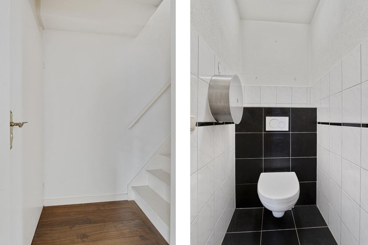 In de tussenhal bevindt zich de toiletruimte en de trapopgang naar de eerste verdieping.