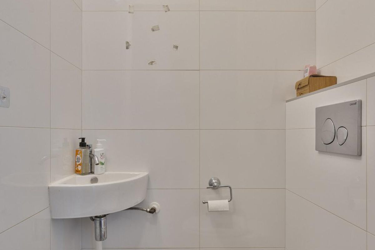 - Toilet: Het toilet is netjes afgewerkt met lichtkleurige wandtegels en een moderne, grijze vloertegel. Het is voorzien van een wandcloset met inbouwreservoir en een fonteintje, wat zorgt voor een praktisch en verzorgd geheel.