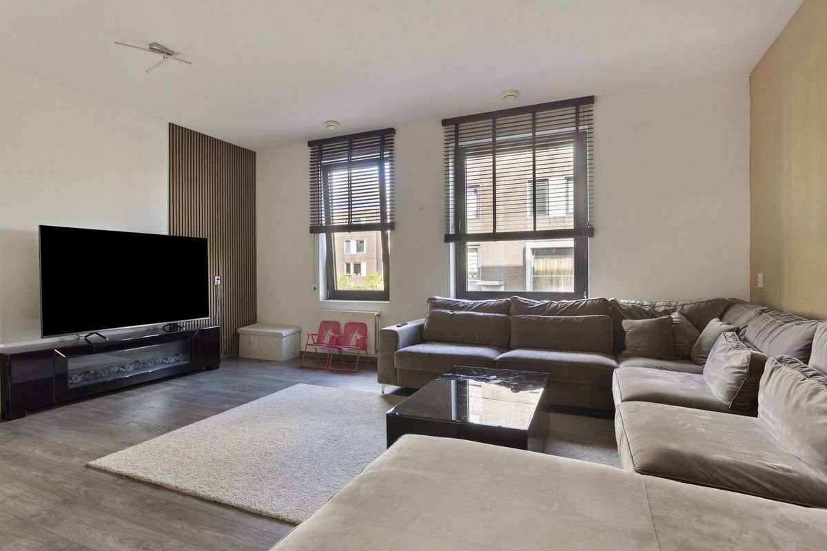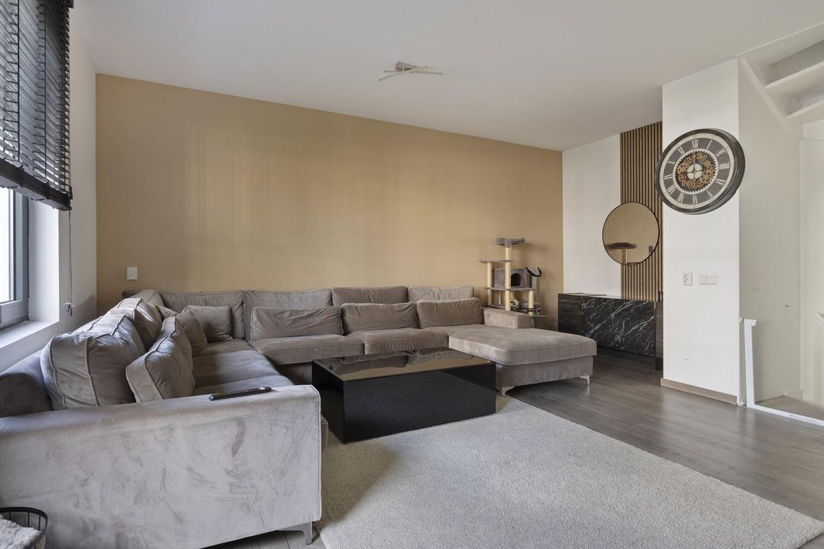 - Woonkamer: De woonkamer heeft een moderne uitstraling met een stijlvolle houtlook vloer en lichte wanden. De zandkleurige accentmuur voegt warmte en sfeer toe, waardoor de ruimte zowel ruimtelijk als gezellig aanvoelt.