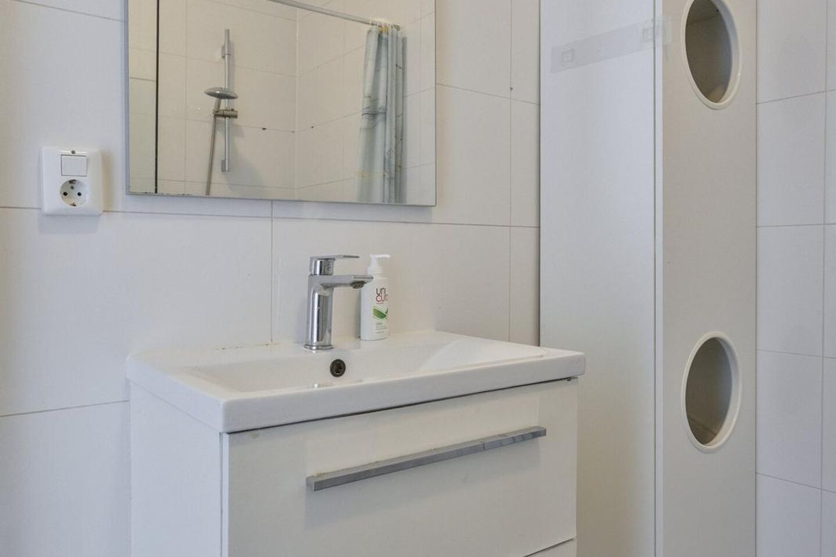 - Badkamer: De badkamer is volledig betegeld met grote, lichte wandtegels en grijze vloertegels, wat zorgt voor een moderne en frisse uitstraling. Daarnaast is de ruimte voorzien van een toilet met een handige nis.