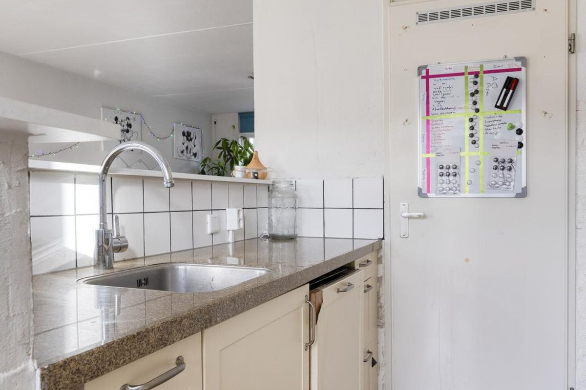 De keuken bevindt zich aan de achterzijde van de woning en heeft een praktische hoekopstelling. Hier vind je diverse inbouwapparatuur zoals een kookplaat met afzuigkap, oven, koelkast en de vaatwasser. Vanuit de keuken heb je direct toegang tot de achtertuin, ideaal om in de zomer de deuren open te zetten en het binnen- en buitenleven met elkaar te verbinden.