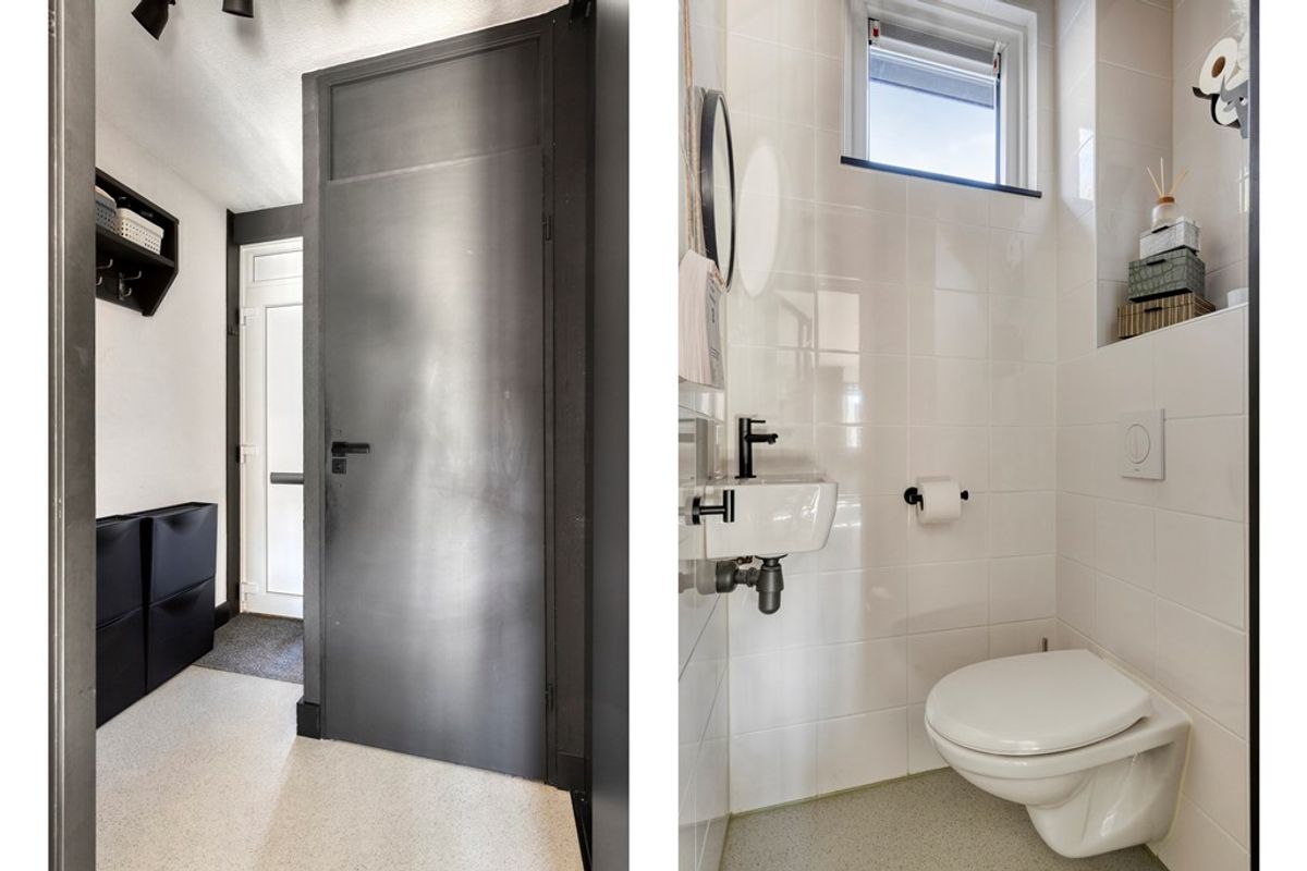 Entree met meterkast, toiletruimte en trap naar de verdieping.