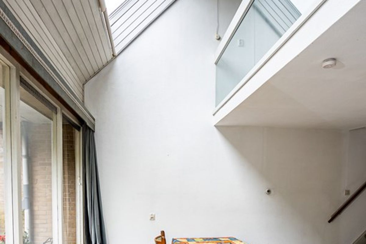 overloop met witgoedaansluiting en cv-ketel, 4e slaap-/werkkamer met dakraam, vaste wastafel en verwarming.