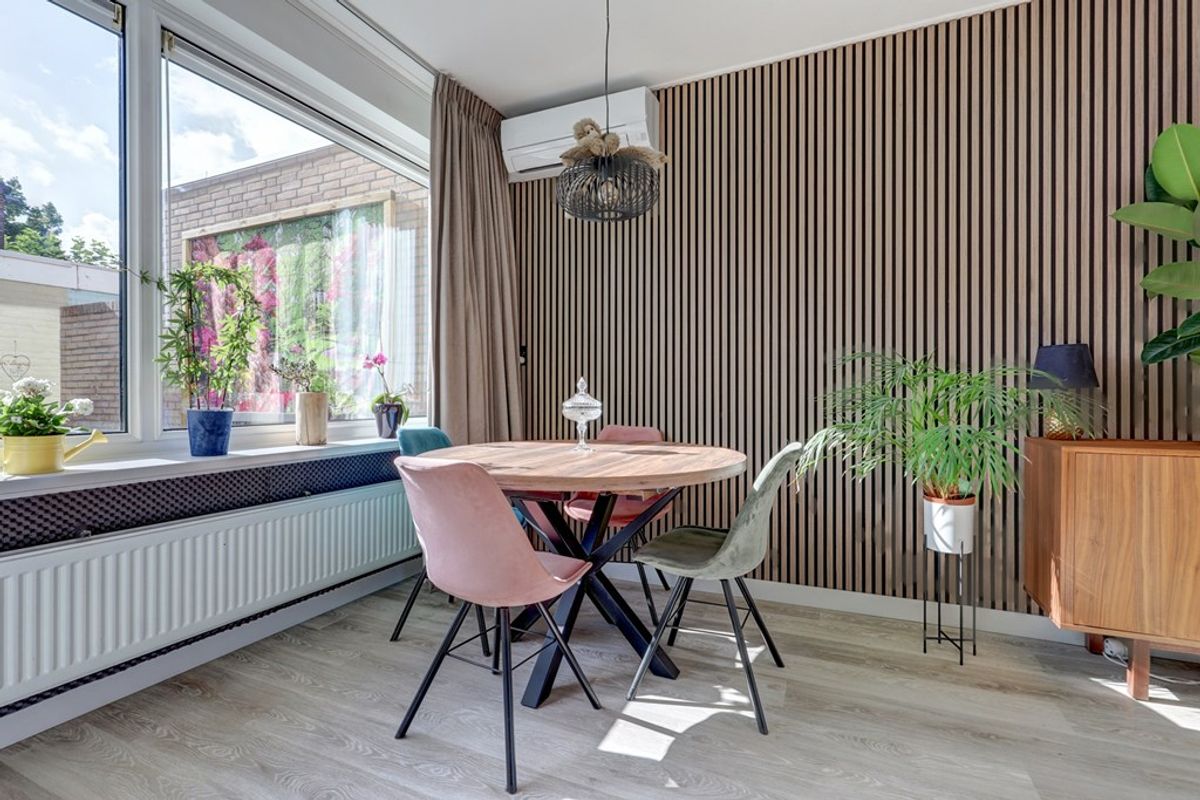 De woning is slim en smaakvol uitgebreid, met aan de zijkant een aanbouw die zorgt voor extra leefruimte. In deze aanbouw is een extra zitruimte gecreëerd, die naadloos aansluit op de keuken. Ook is er een praktische kantoorruimte gemaakt, ideaal voor thuiswerken of als speelkamer voor de kinderen. De keuken is in 2021 vernieuwd en van alle gemakken voorzien.