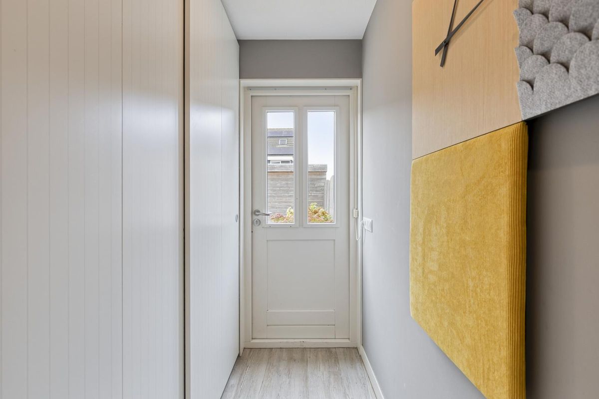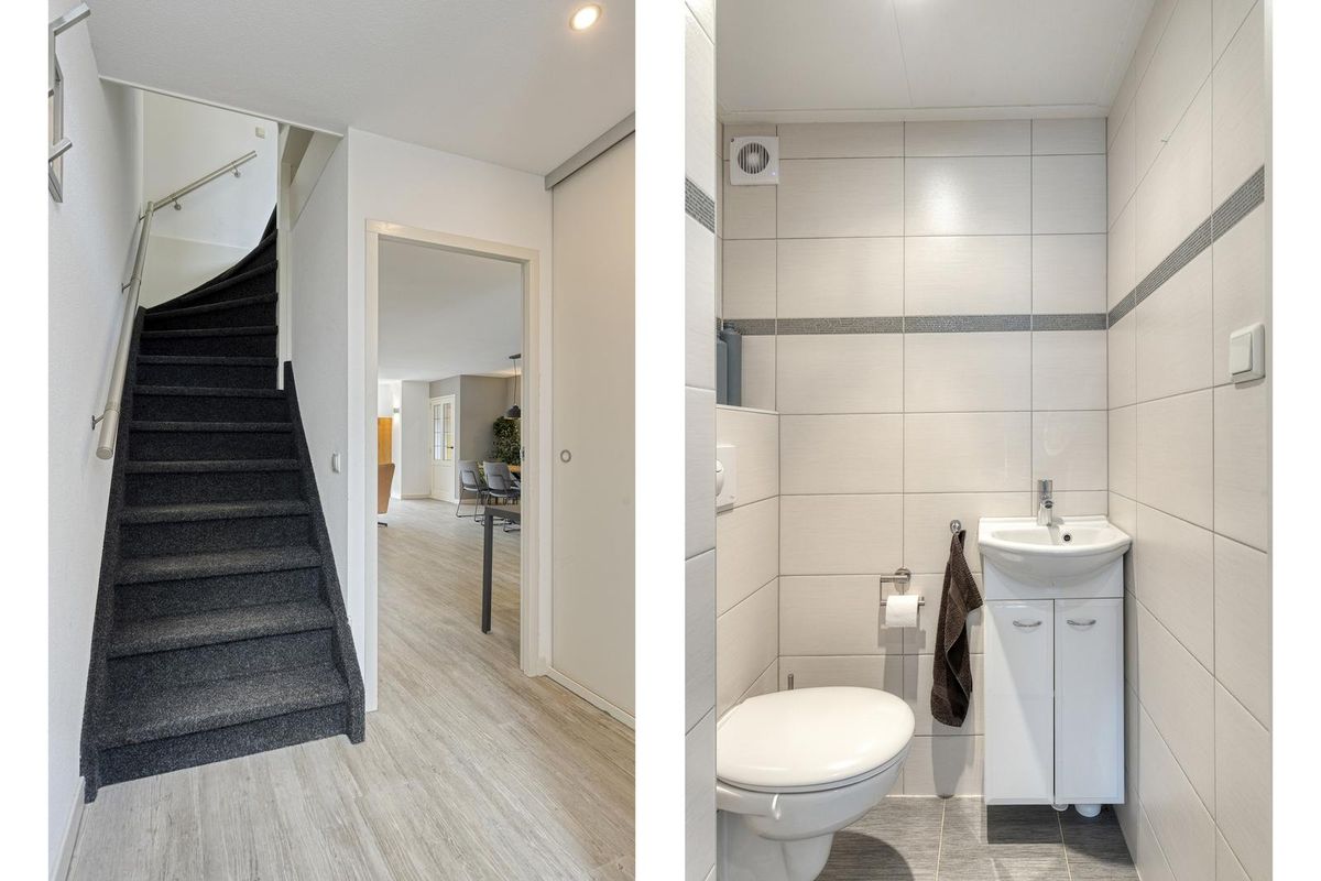Bij deze woning heb je de mogelijkheid om via 2 zijdes binnen te komen. Aan de voorzijde via de voordeur of via de hal aan de achterzijde van de woning in de tweede hal. Dit is uitzonderlijk in deze wijk. In de entreehal aan de voorzijde tref je de toiletruimte, meterkast, een maatwerk vaste kast en de trapopgang. De toiletruimte is voorzien van een hangend toilet en fontein met meubel. De gehele begane grond (behalve het toilet) is voorzien van een comfortabele vloerverwarming, voor heerlijke warme voeten!