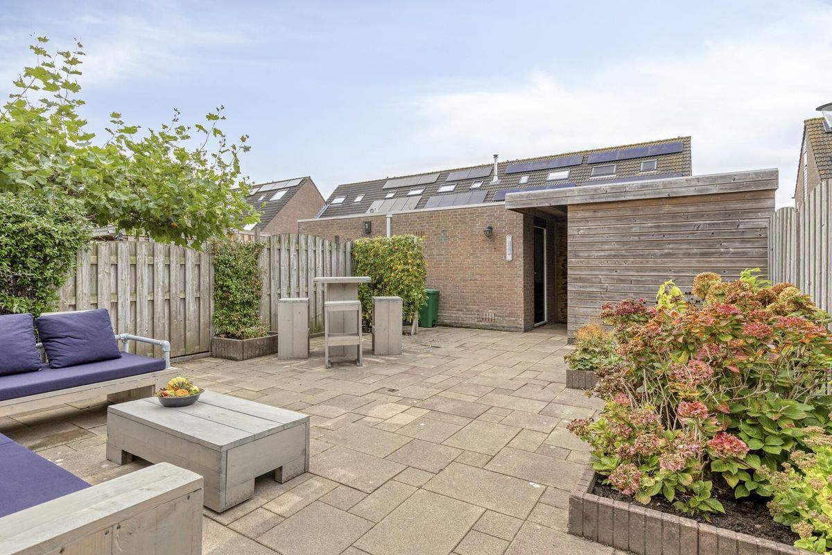 De tuin is royaal bemeten en ligt op het westen. Ideaal voor de lange zomeravonden! Bereikbaar via de achterdeur en zij-ingang (poort). Alle fietsen kun je perfect stallen onder de overkapping of in de vrijstaande stenen berging, voorzien van elektra.