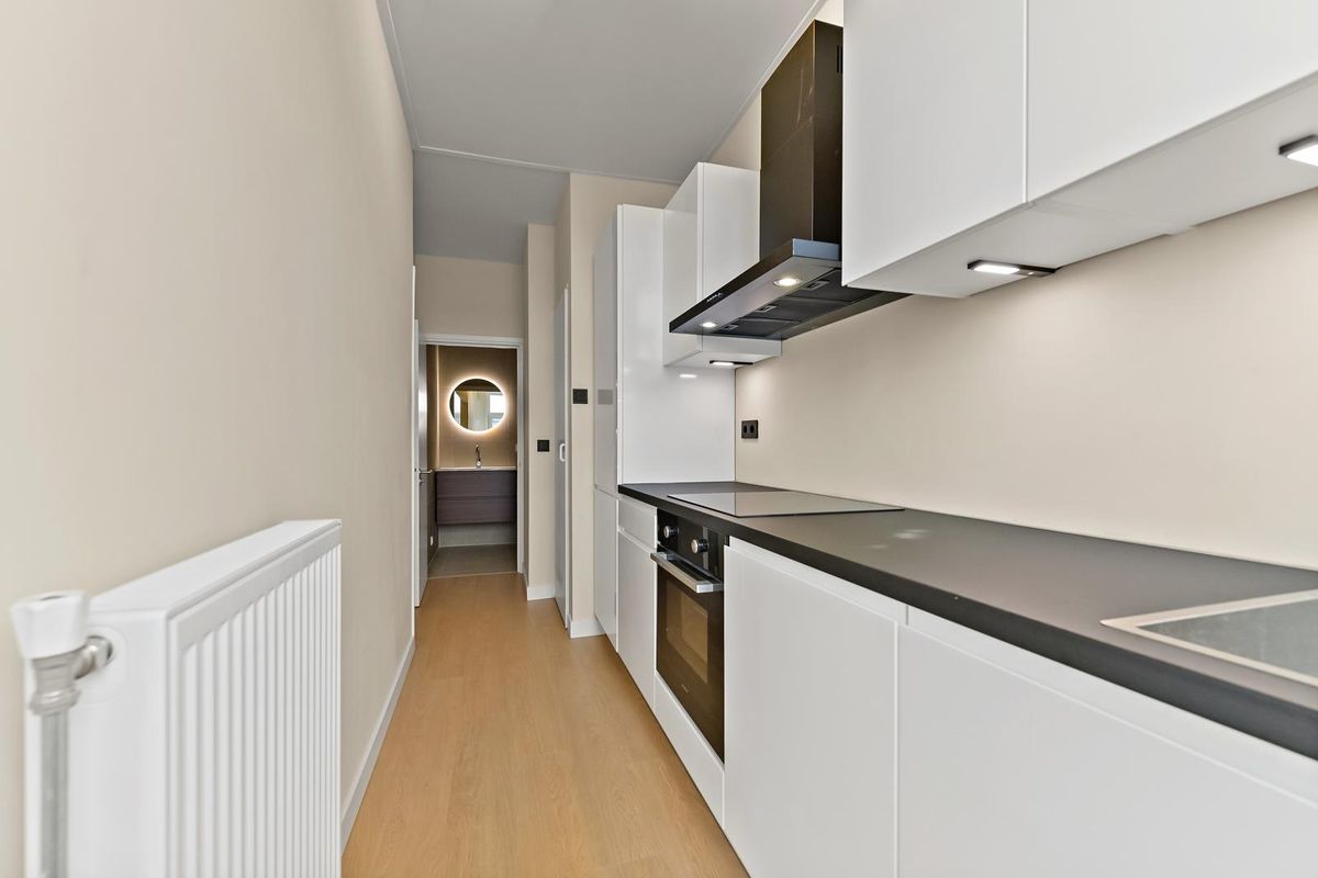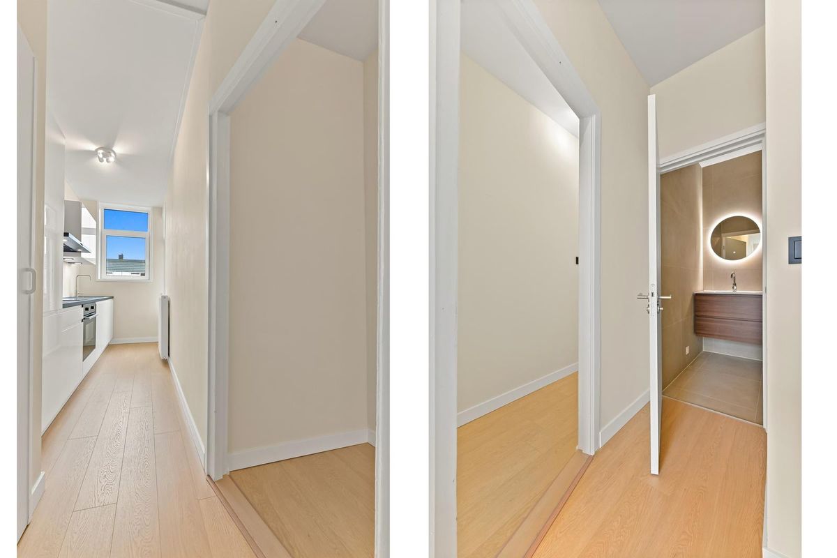 Entree, woonkamer, ruime slaapkamer achterzijde met toegang tot balkon, slaapkamer voorzijde, moderne keuken met toegang tot balkon en moderne badkamer voorzien van douche en vrij hangend closet.