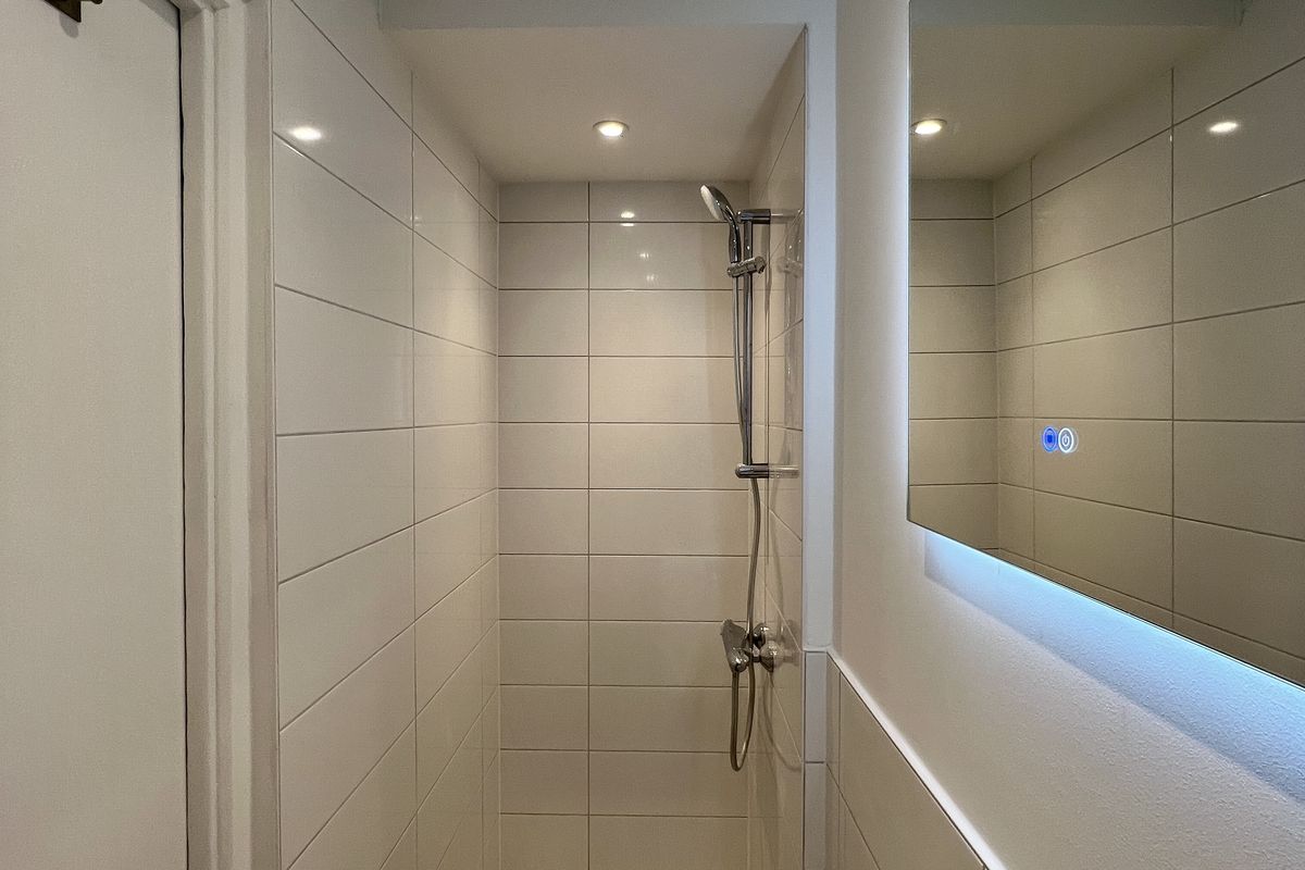 De badkamer is uitgerust met een aparte douche, wat zorgt voor extra comfort en gebruiksgemak in de ochtendspits.