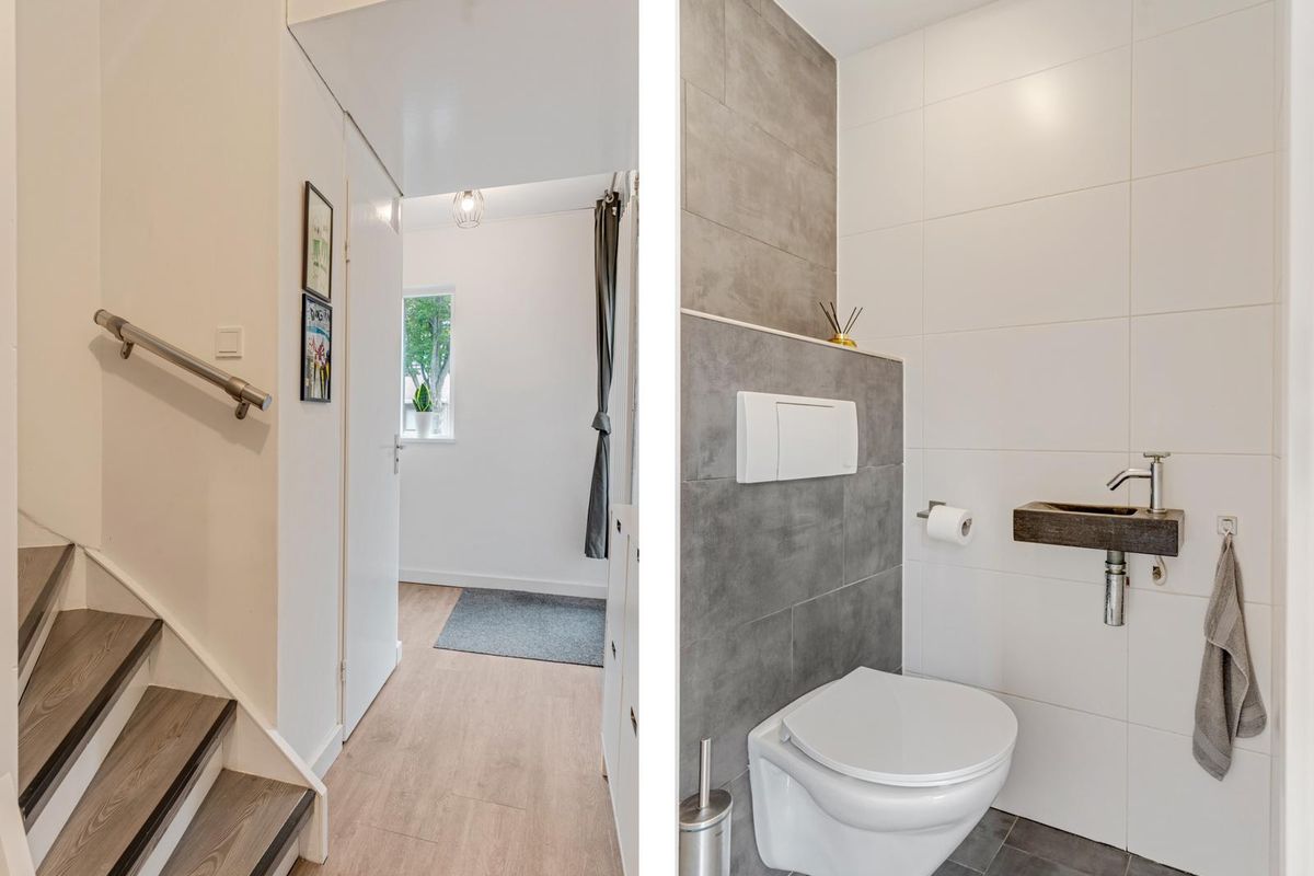 Bij aankomst valt direct de verzorgde voortuin op: een fijne plek die de woning een uitnodigende uitstraling geeft. U stapt binnen in de hal met toegang tot de meterkast, het toilet en de vaste trap naar boven.