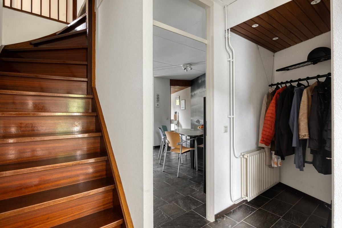Bij aankomst valt direct de ruime oprit met eigen parkeerplek op. De voortuin is verzorgd en de ruime, inpandige garage, voorzien van elektra, wateraansluiting en een roldeur, is ideaal voor het bergen van al uw (tuin)spullen, vriezer, fietsen en heeft voldoende ruimte voor een kluswerkplek.
