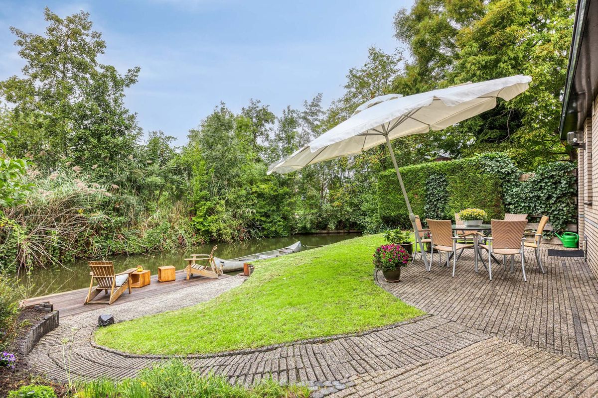 De achtertuin ligt direct aan het water en beschikt over een ruime vlonder en meerdere gezellige zithoekjes, perfect om te genieten van het uitzicht en de rustige omgeving. Of met een bootje of kano het water op te gaan. Gelegen op het zuidwesten, kunt u hier vrijwel de hele dag van de zon genieten en ’s avonds nog heerlijk buiten zitten. De tuin is goed onderhouden, biedt volop privacy en vormt een ideale plek om te ontspannen of gezellig samen te zijn.
