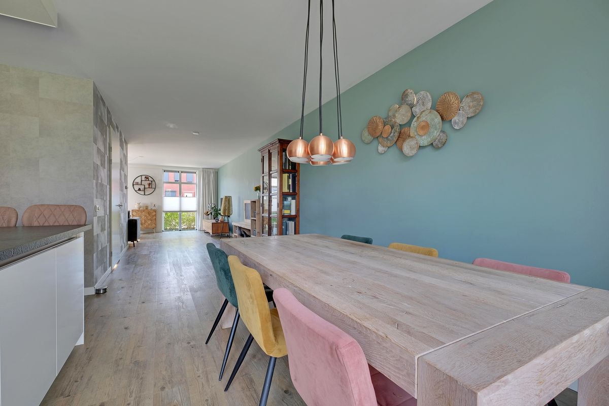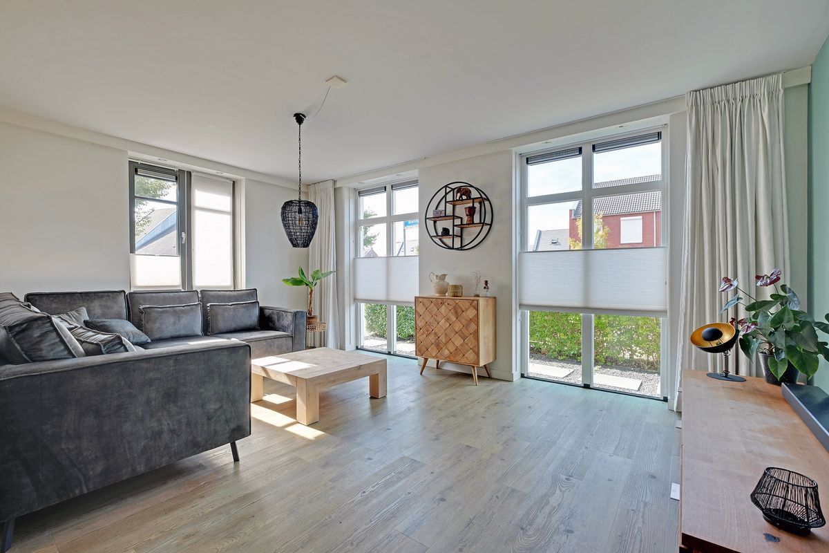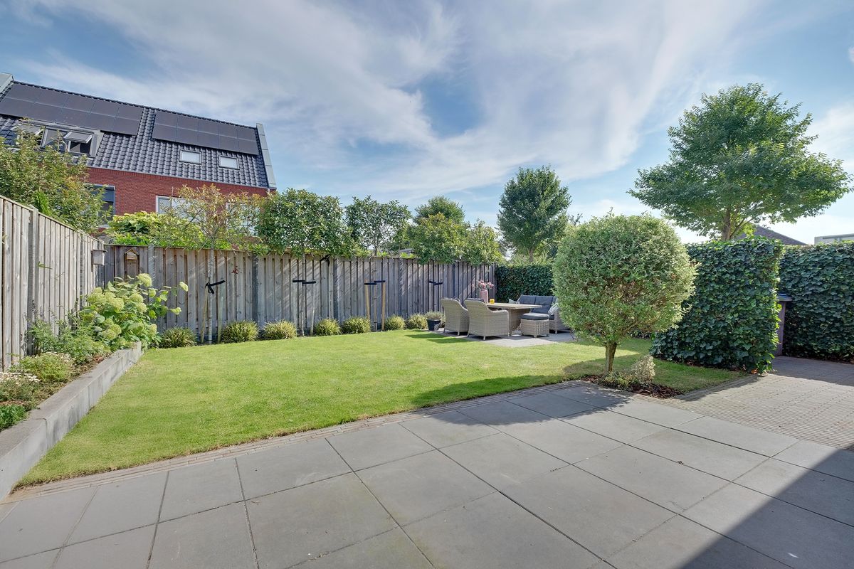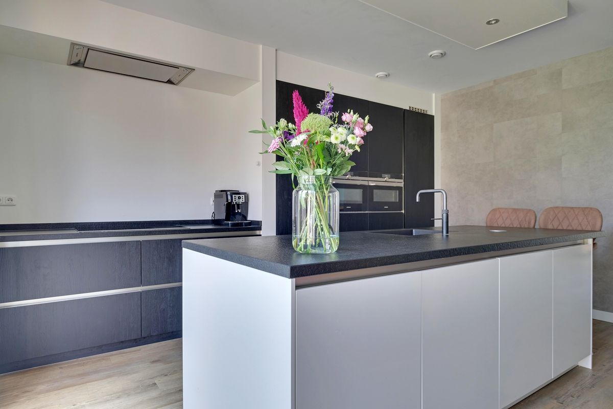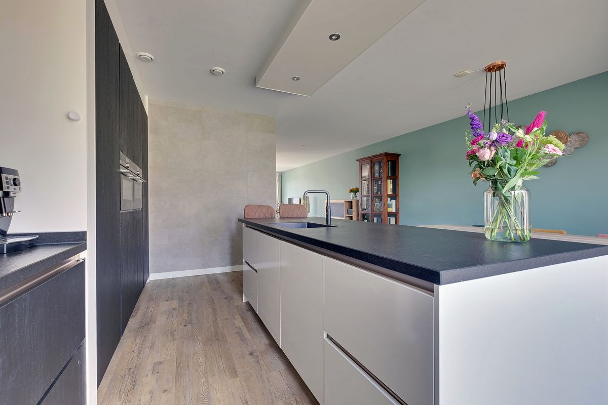 Via de entree kom je in de ruime hal met meterkast en een moderne toiletruimte voorzien van een zwevend toilet en fontein. Vanuit de hal kom je in de ruime woonkamer aan de voorzijde van de woning. Een comfortabele en lichte leefruimte met een prettige, open indeling die perfect aansluit op de rest van het huis. Aan de achterzijde is een stijlvolle open keuken, uitgevoerd met een praktisch keukeneiland en uitzicht op de tuin. Dankzij de openslaande deuren naar de achtertuin geniet je hier van veel lichtinval en een fijne verbinding met buiten. De keuken is uiteraard compleet uitgerust met alle benodigde inbouwapparatuur. De gehele begane grond is afgewerkt met een luxe PVC-vloer en voorzien vloerverwarming. Aan de woning grenst een garage, ideaal voor opslag of het stallen van fietsen. De oprit aan de voorzijde biedt parkeergelegenheid voor meerdere auto’s. De fraai aangelegde achtertuin ligt op het noorden, maar vanwege de diepte en de breedte allerminst een gebrek aan zon, en biedt volop privacy. Dankzij de vrije ligging en het feit dat de tuin ook via de zijkant toegankelijk is, geniet je hier optimaal van rust, ruimte en gemak.