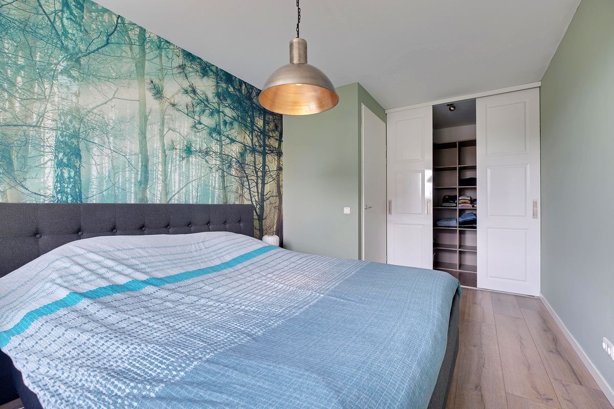 Overloop, 3 slaapkamers allen voorzien van een moderne laminaatvloer en de ouderslaapkamer heeft de beschikking over een eigen, ingebouwde inloopkast. De moderne badkamer, is stijlvol afgewerkt en voorzien van een inloopdouche, ligbad en een dubbele wastafelmeubel.