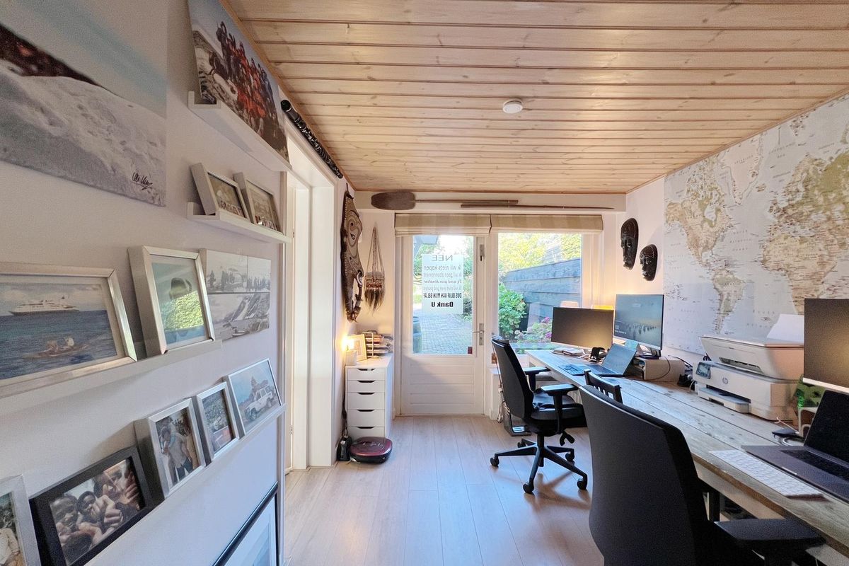 De buitenruimte maakt het plaatje compleet: een fraai onderhouden en ruime achtertuin met schuur en een gezellige veranda. Voorzijde tuin aanwezig, en parkeren kan moeiteloos op eigen terrein.
