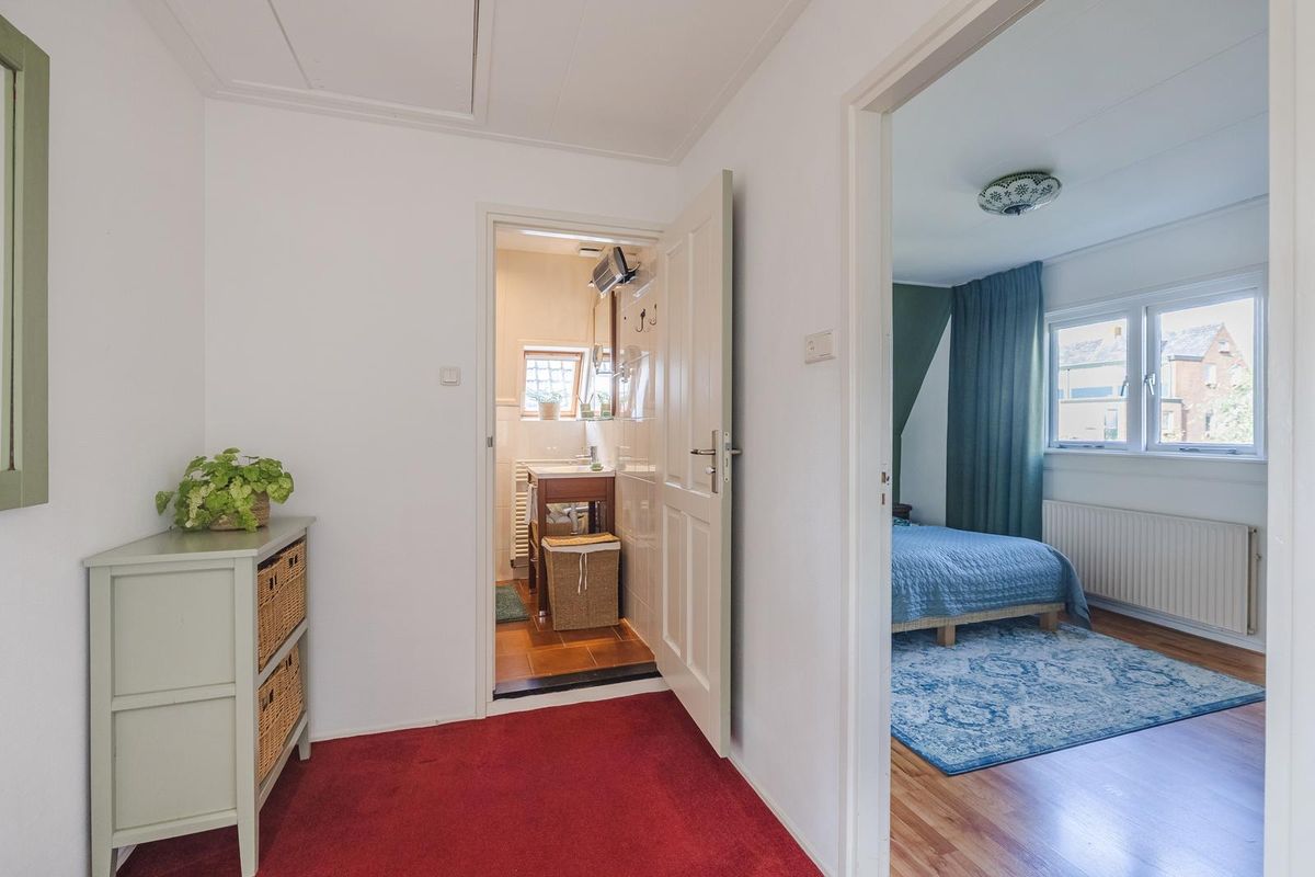 De eerste verdieping beschikt over twee slaapkamers, waarvan één met toegang tot het platte dak. De badkamer (2004) is keurig onderhouden en voorzien van een douchecabine, toilet, wastafelmeubel en een dakraam.