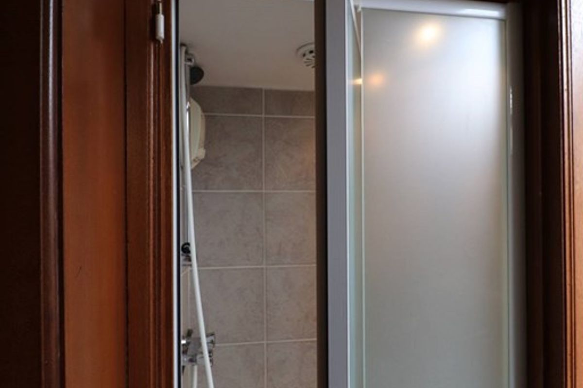 Bij binnenkomst bevindt zich de gang waar aan de rechterzijde het slaapvertrek aansluit. Aan de linkerzijde bevindt zich de keuken, het toilet en de douche, en de ruime, karakteristieke woonkamer.