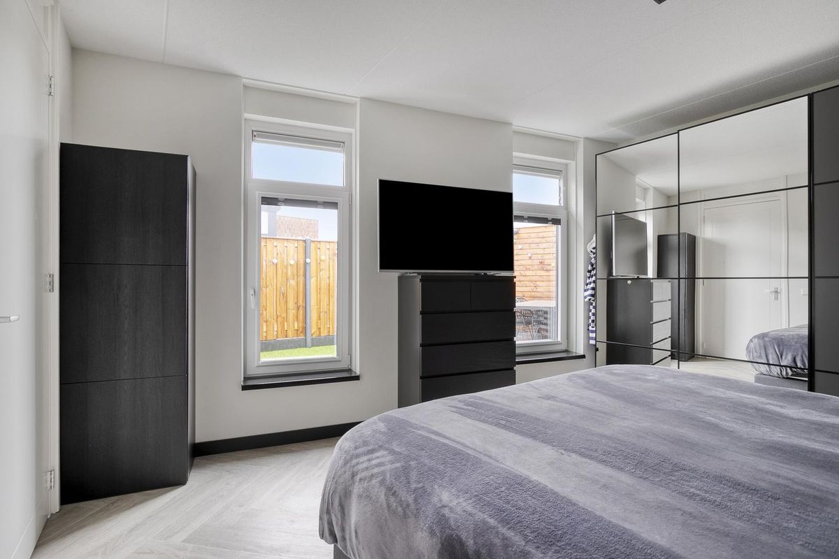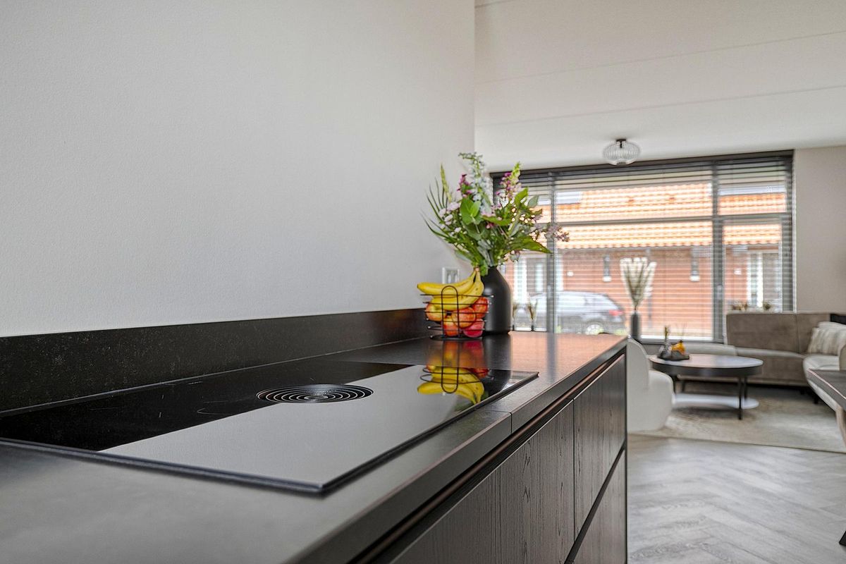 De entree bevindt zich aan de zijkant van de woning en leidt naar een ruime ontvangsthal met modern toilet en toegang tot alle vertrekken. Aan de voorzijde van de woning bevindt zich de living met een sfeervolle zithoek, ideaal voor ontspanning. De eigentijdse open keuken aan de achterzijde is uitgevoerd in een rechte opstelling met een praktische apparatenwand. Openslaande deuren verbinden de keuken direct met de zonnige achtertuin, waardoor binnen- en buitenleven moeiteloos in elkaar overlopen. De gehele begane grond is voorzien van vloerverwarming en een stijlvolle PVC-vloer, wat bijdraagt aan een luxe en comfortabele uitstraling. De slaapkamer ligt aan de achterzijde en biedt uitzicht op de tuin. De ruime badkamer is uitgerust met een ligbad, inloopdouche en een dubbele wastafel met meubel. Ook hier zorgt vloerverwarming voor extra comfort en warmte.