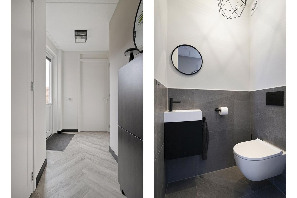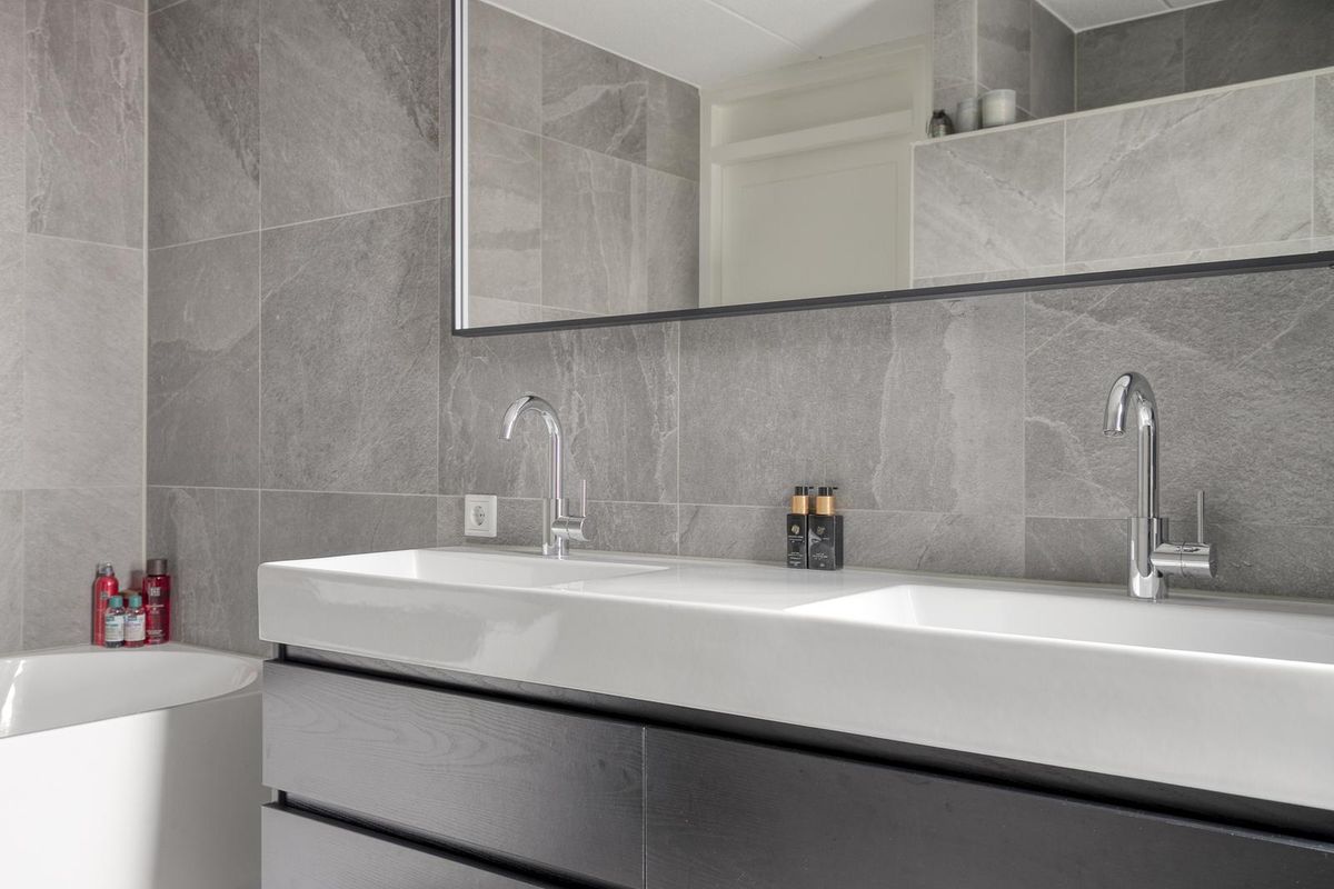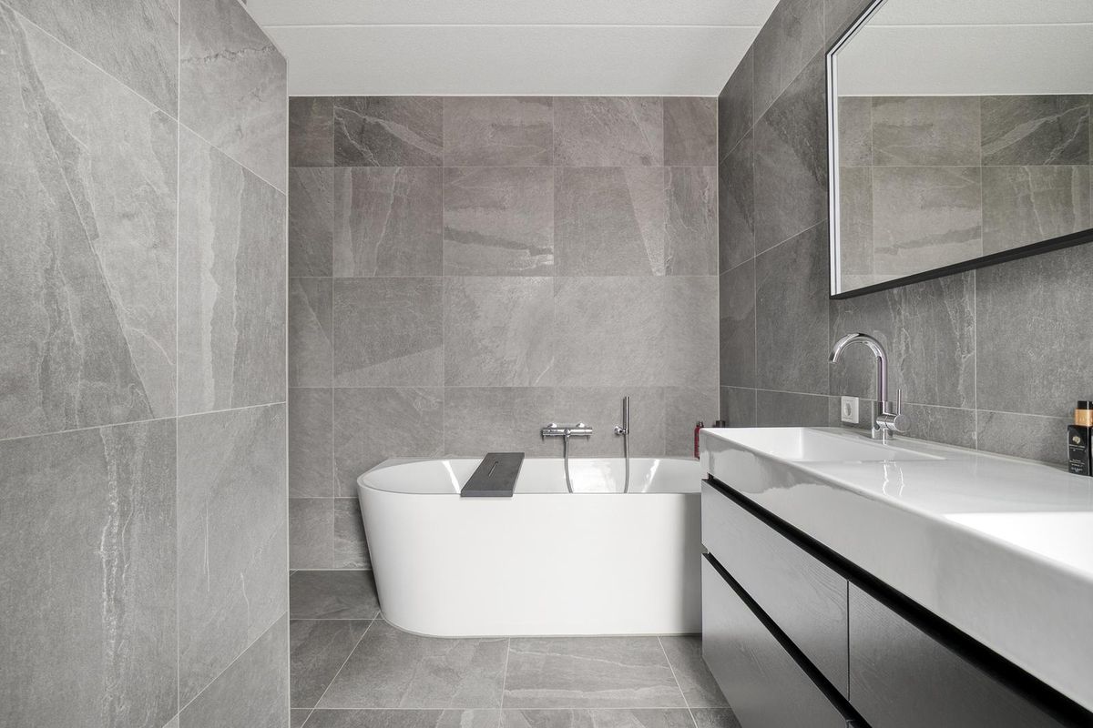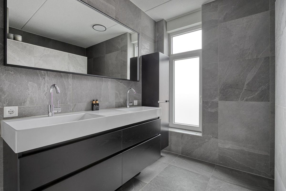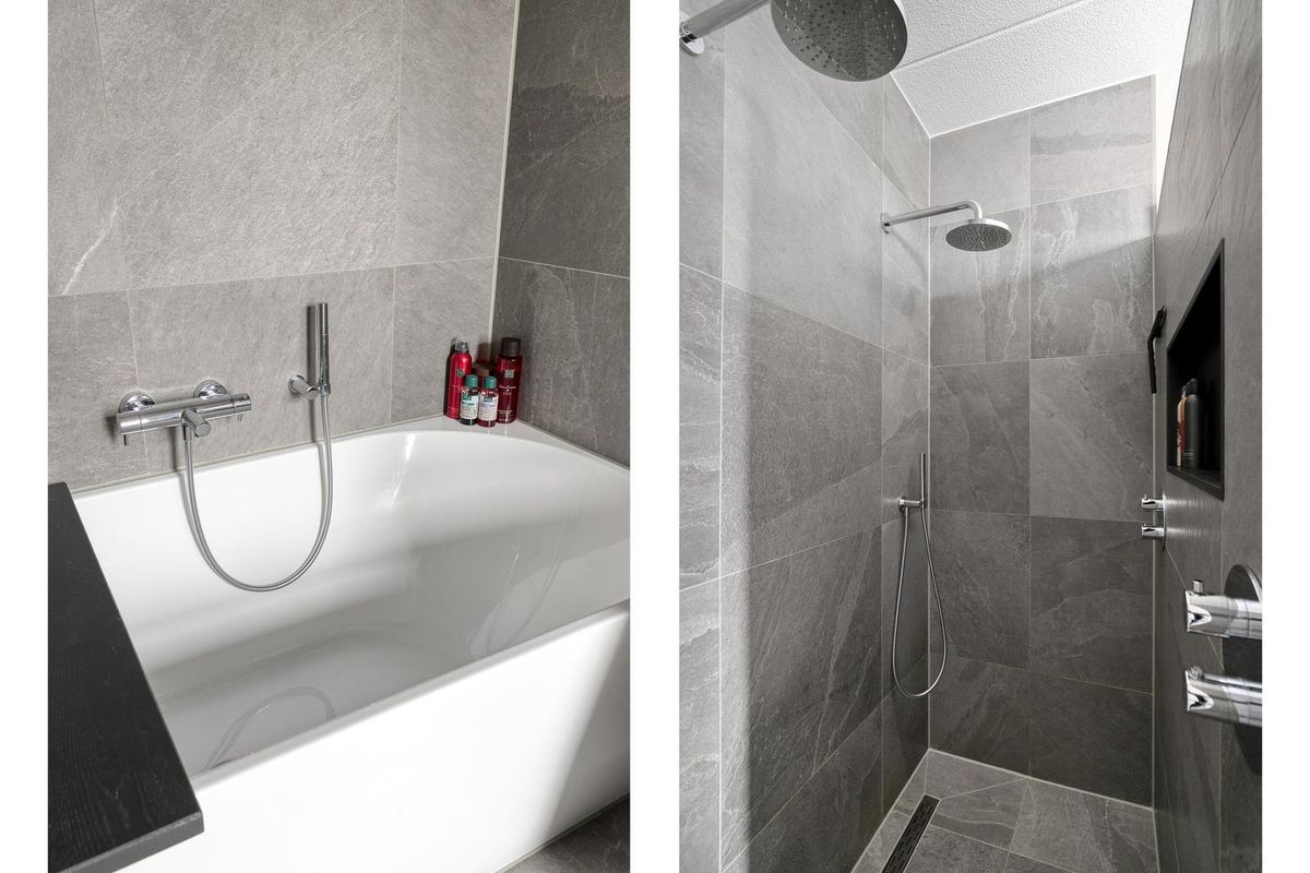 Vanaf de overloop is toegang tot twee ruime slaapkamers en de tweede badkamer. Deze badkamer is uitgerust met een aansluiting inloopdouche, een wastafel met meubel en een toilet, en biedt nu ruimte voor een witgoedaansluiting. Naast de badkamer bevindt zich een praktische berging met omvormer, waardoor extra opbergruimte en functionaliteit worden geboden.