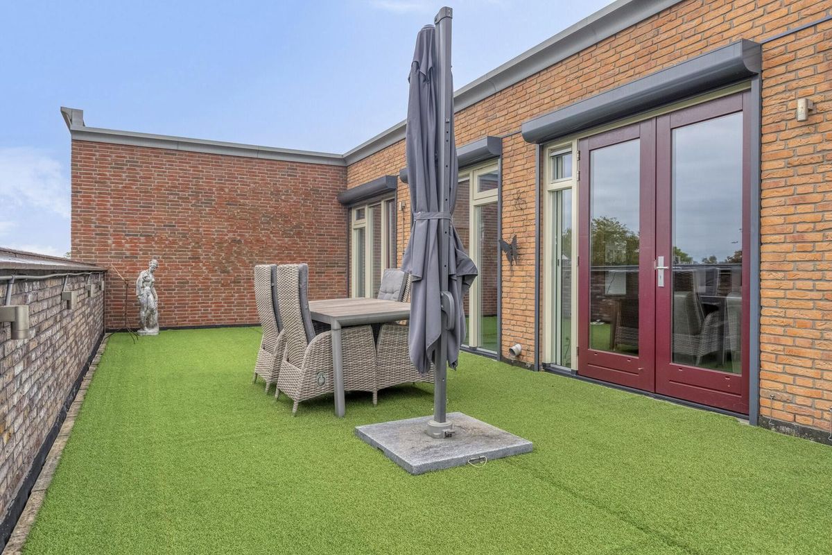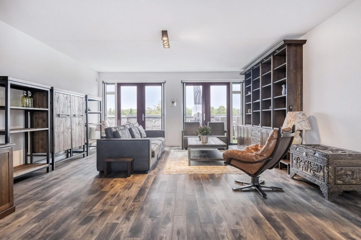 Grenzend aan de keuken ligt de ruime woonkamer. Dankzij de grote raampartijen is er altijd genoeg daglicht aanwezig. Vanuit de woonkamer is er directe toegang tot het bijzonder royale dakterras. Dit samen met de open keuken en woonkamer maakt het samen een heerlijke leefruimte. Het dakterras is van groot formaat en biedt veel privacy. Een fijne plek om buiten te zitten.