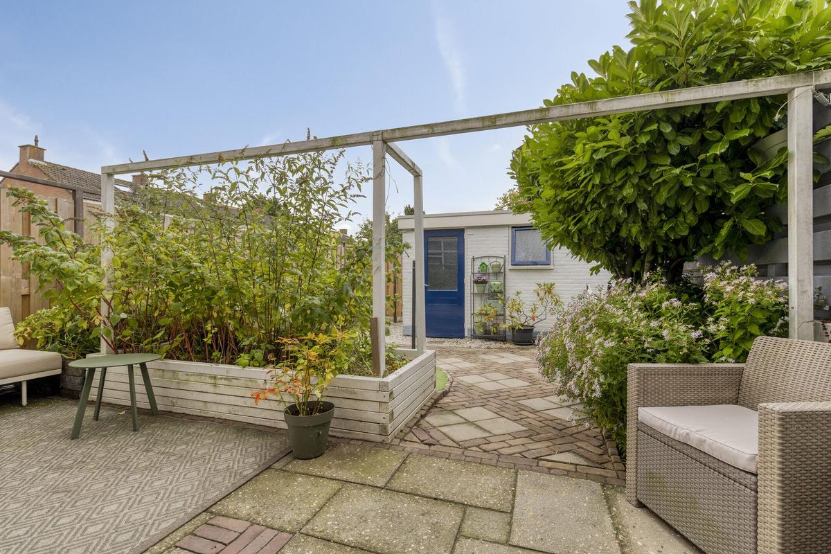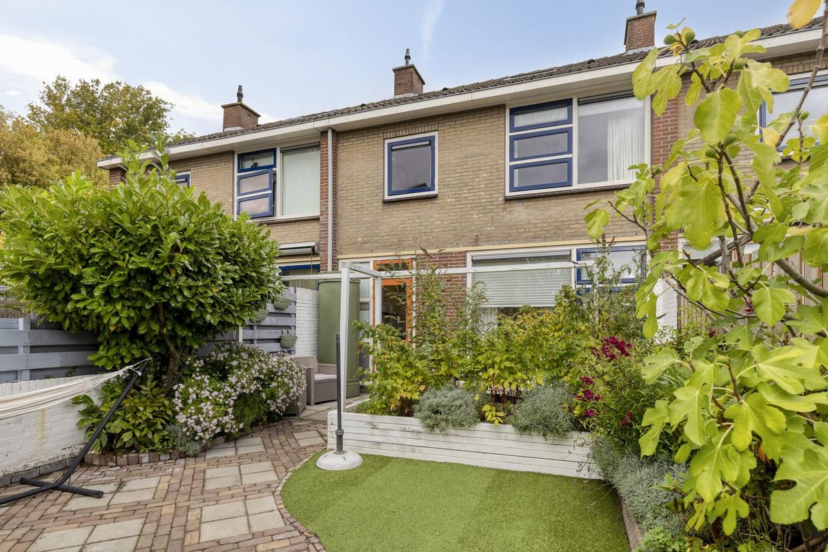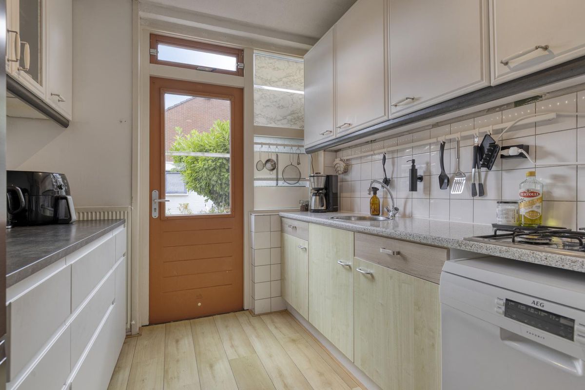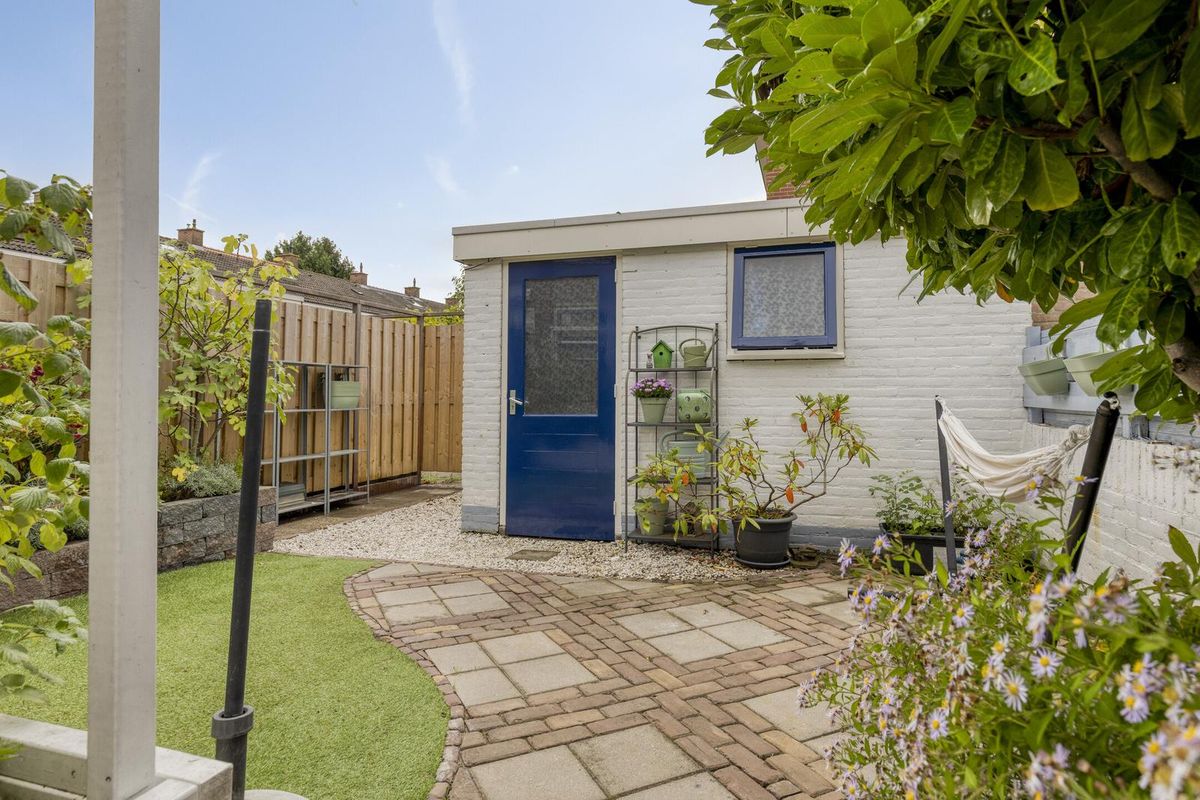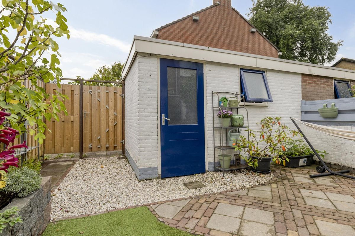 Entree/hal met moderne meterkast (met 3-fase aansluiting en glasvezel), trapkast en toiletruimte (met staande WC en fonteintje). De woonkamer heeft een lichte doorzonindeling en is afgewerkt met laminaat. Aan de achterzijde ligt de dichte keuken met een nette keukenopstelling met een ingebouwde gaskookplaat en deur naar de achtertuin. In de tuin geniet je van veel privacy en van de uitstekende zonligging (zuid/zuidwest). Er zijn 2 terrassen met een groenborder in het midden en een vrijstaande stenen schuur achterin. Ook is de tuin bereikbaar via een achterom. De schutting is (deels) vernieuwd in 2023.