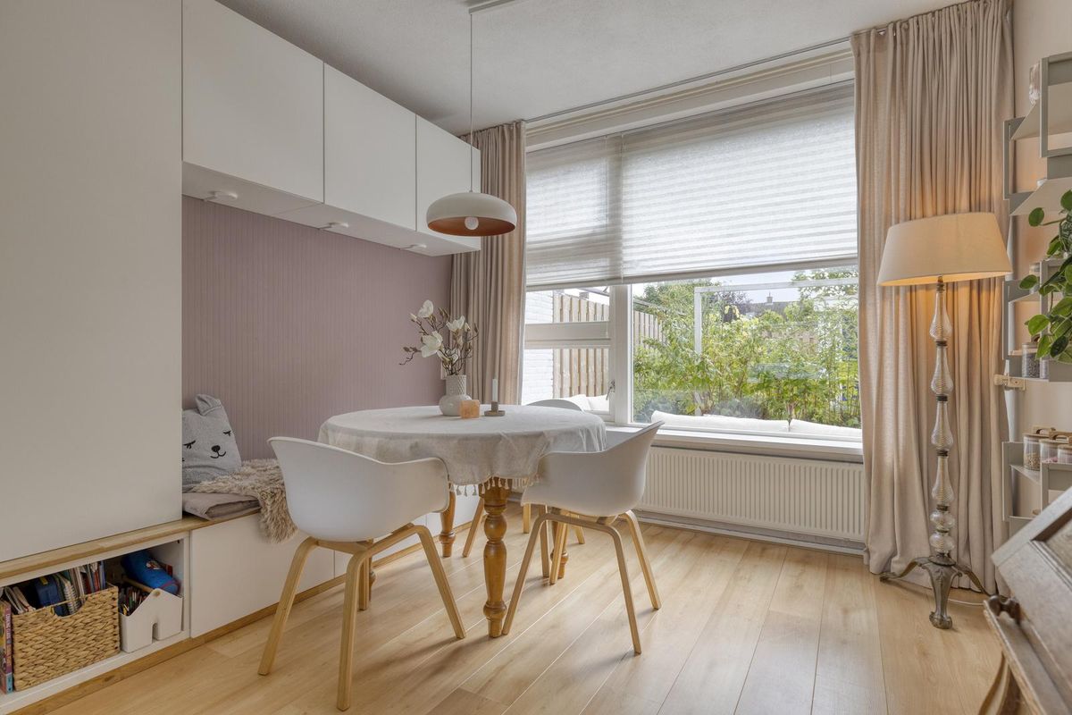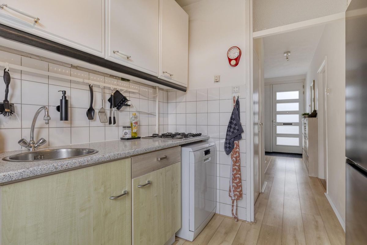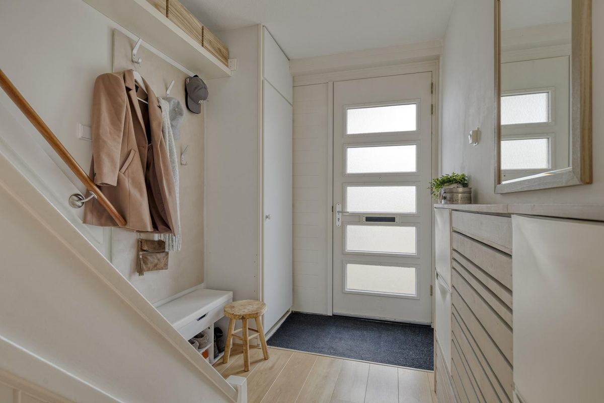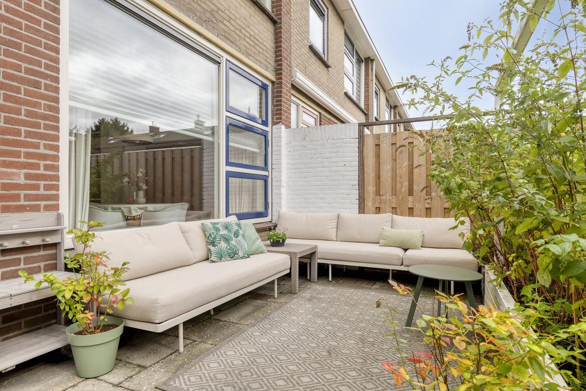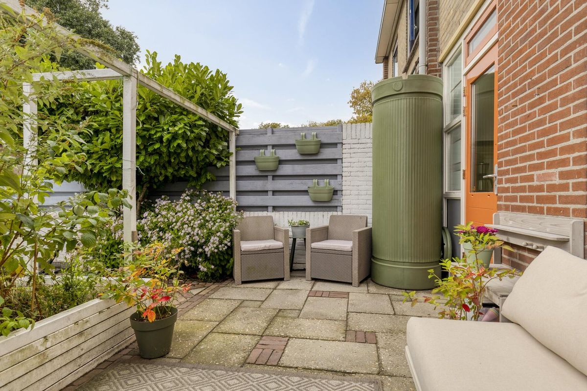 Entree/hal met moderne meterkast (met 3-fase aansluiting en glasvezel), trapkast en toiletruimte (met staande WC en fonteintje). De woonkamer heeft een lichte doorzonindeling en is afgewerkt met laminaat. Aan de achterzijde ligt de dichte keuken met een nette keukenopstelling met een ingebouwde gaskookplaat en deur naar de achtertuin. In de tuin geniet je van veel privacy en van de uitstekende zonligging (zuid/zuidwest). Er zijn 2 terrassen met een groenborder in het midden en een vrijstaande stenen schuur achterin. Ook is de tuin bereikbaar via een achterom. De schutting is (deels) vernieuwd in 2023.