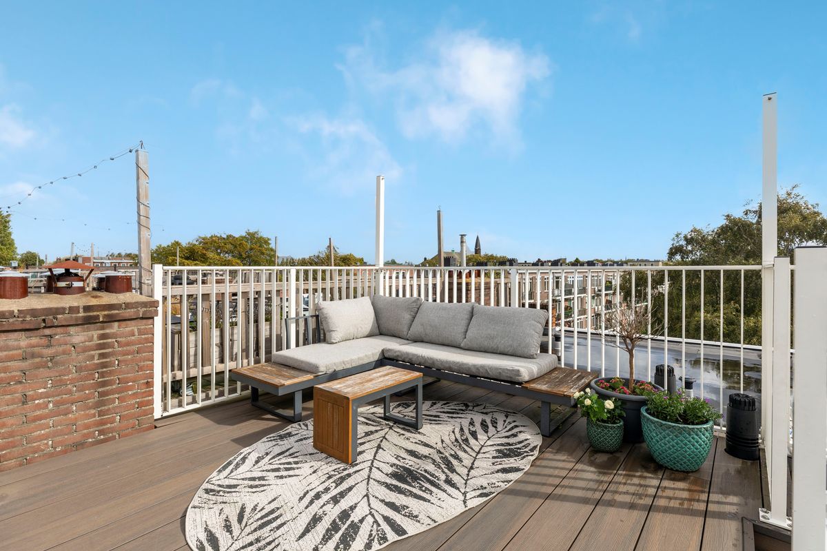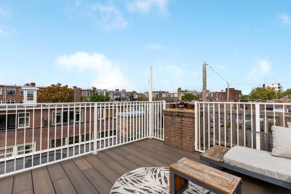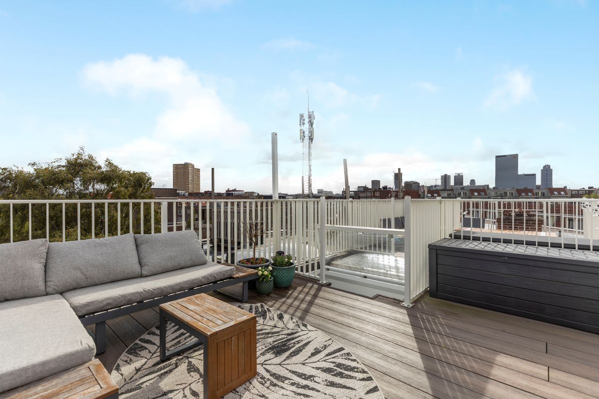 De vaste trap biedt toegang tot het dakterras, het absolute hoogtepunt! Hier geniet u in alle privacy van een heerlijke buitenruimte met een kunststof vloer met houtlook en wit hekwerk. Het uitzicht is werkelijk spectaculair: u kijkt uit richting het iconische NN-gebouw, een echt Rotterdams herkenningspunt. Een perfecte plek om te ontspannen, te borrelen of met vrienden te genieten van de zonsondergang.