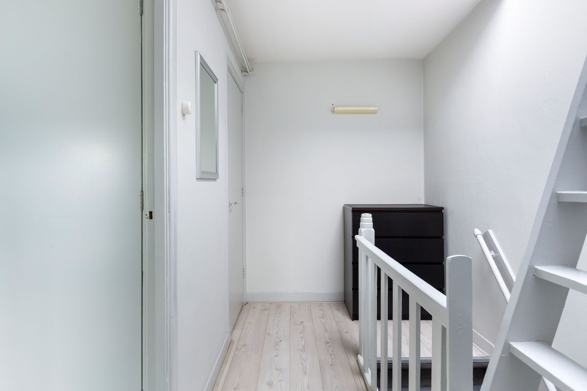Via het open portiek bereik je de eigen voordeur op de eerste etage. Hier kom je binnen in een ruime hal met voldoende plek voor de garderobe. Vanuit deze hal leidt een vaste trap naar de derde verdieping, waar de woonverdieping zich bevindt.