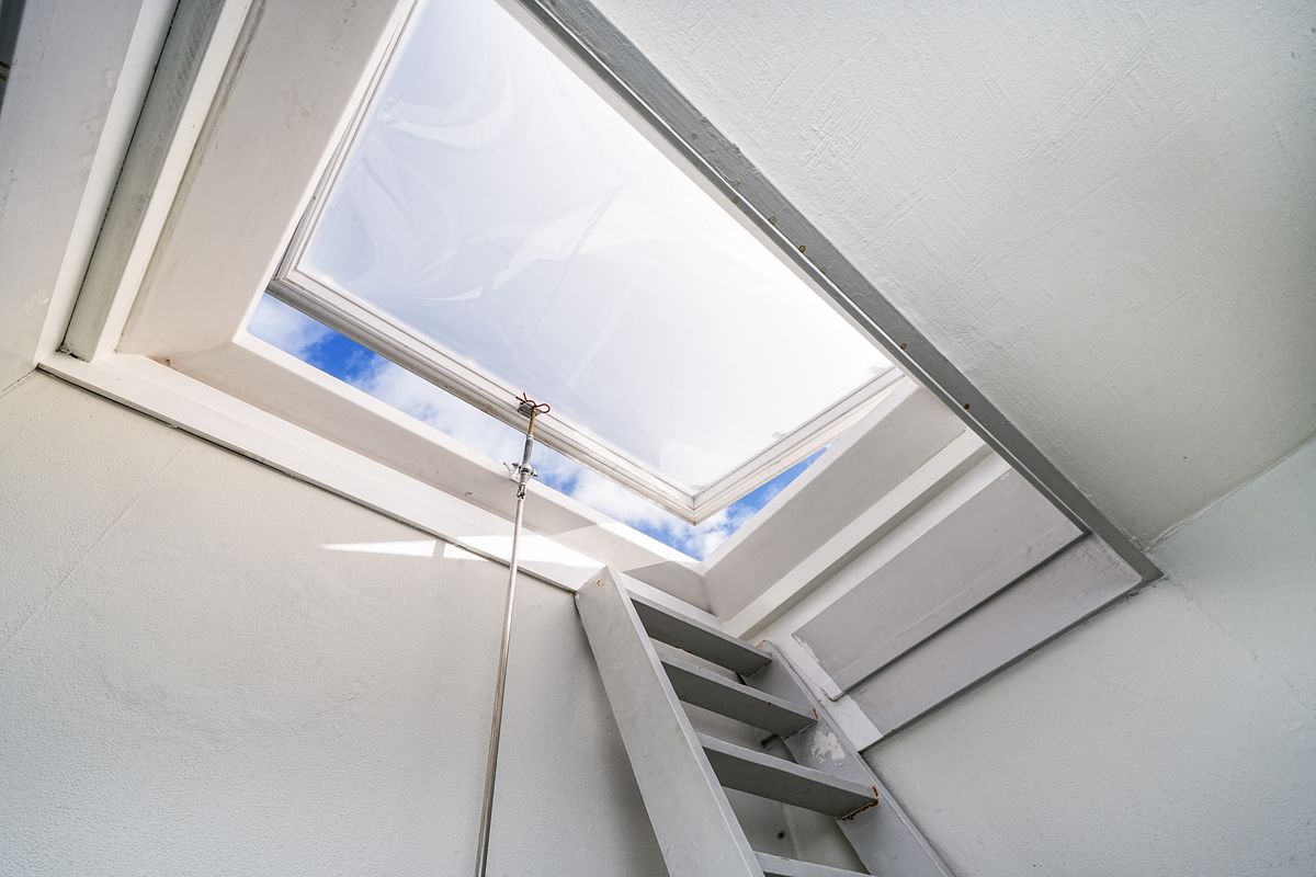 Op de vierde verdieping kom je boven op een ruime overloop, die dankzij een grote lichtkoepel baadt in natuurlijk daglicht. Vanaf hier heb je toegang tot twee slaapkamers en de praktische wasruimte, waar zich de CV-combiketel en de aansluitingen voor de wasmachine bevinden.