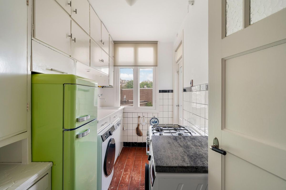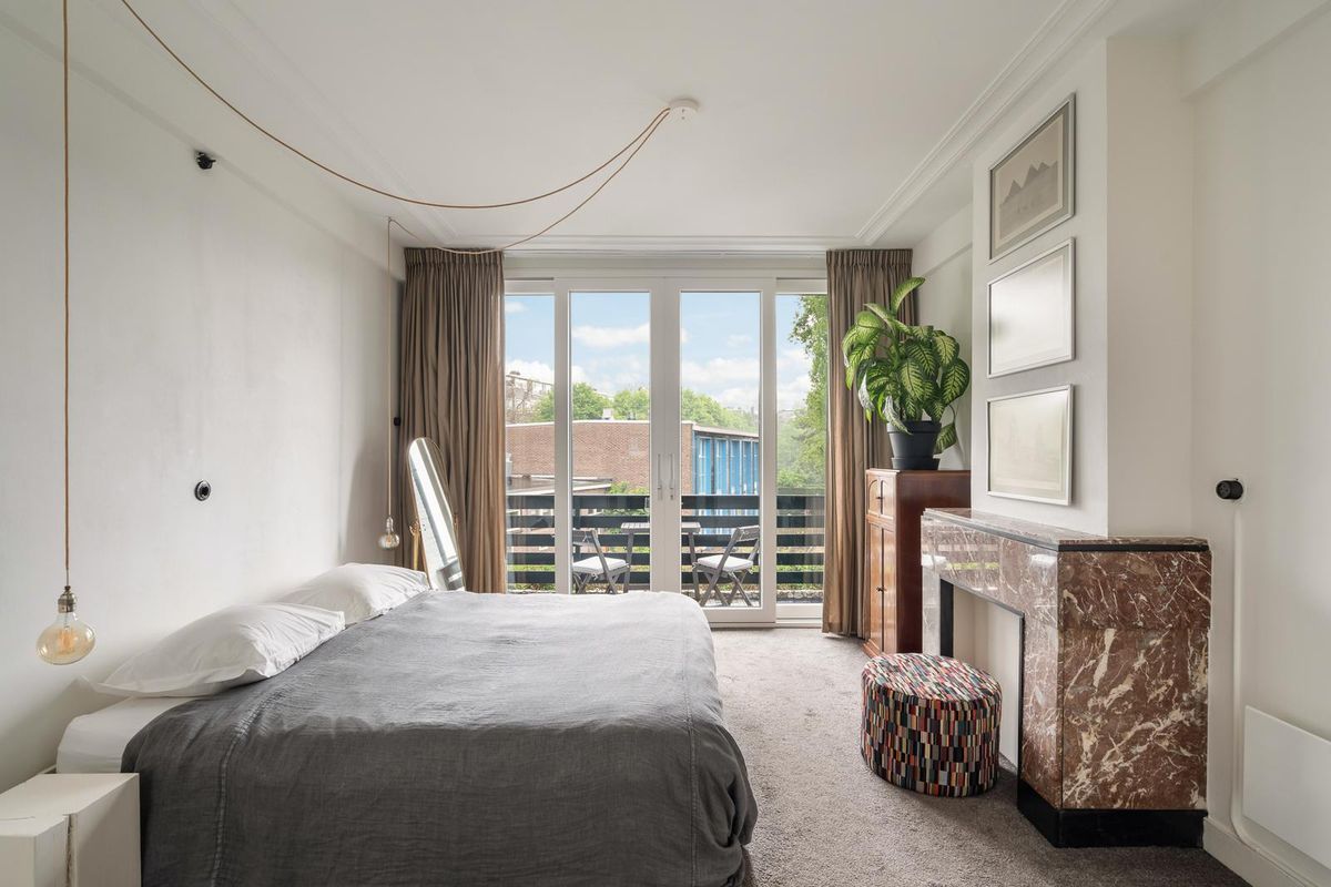 Middels de en suite schuifdeuren bereik je de master bedroom gelegen aan de achterzijde. De ruime master bedroom is stijlvol afgewerkt en voorzien van een comfortabele tapijtvloer, schouw en ornamenten die zorgen voor een warme en huiselijke sfeer. Er is voldoende ruimte voor een tweepersoonsbed en er zijn hier twee royale kasten. Via de schuifdeur bereik je het balkon gelegen op zuidoosten. hier kan je heerlijk genieten van de zon gedurende dag! De keuken met wasaansluiting beschikt over diverse apparatuur zoals een 4-pits gasfornuis met oven, vaatwasser en een koel-/vriescombinatie. Via de keuken heb je ook toegang tot het balkon.