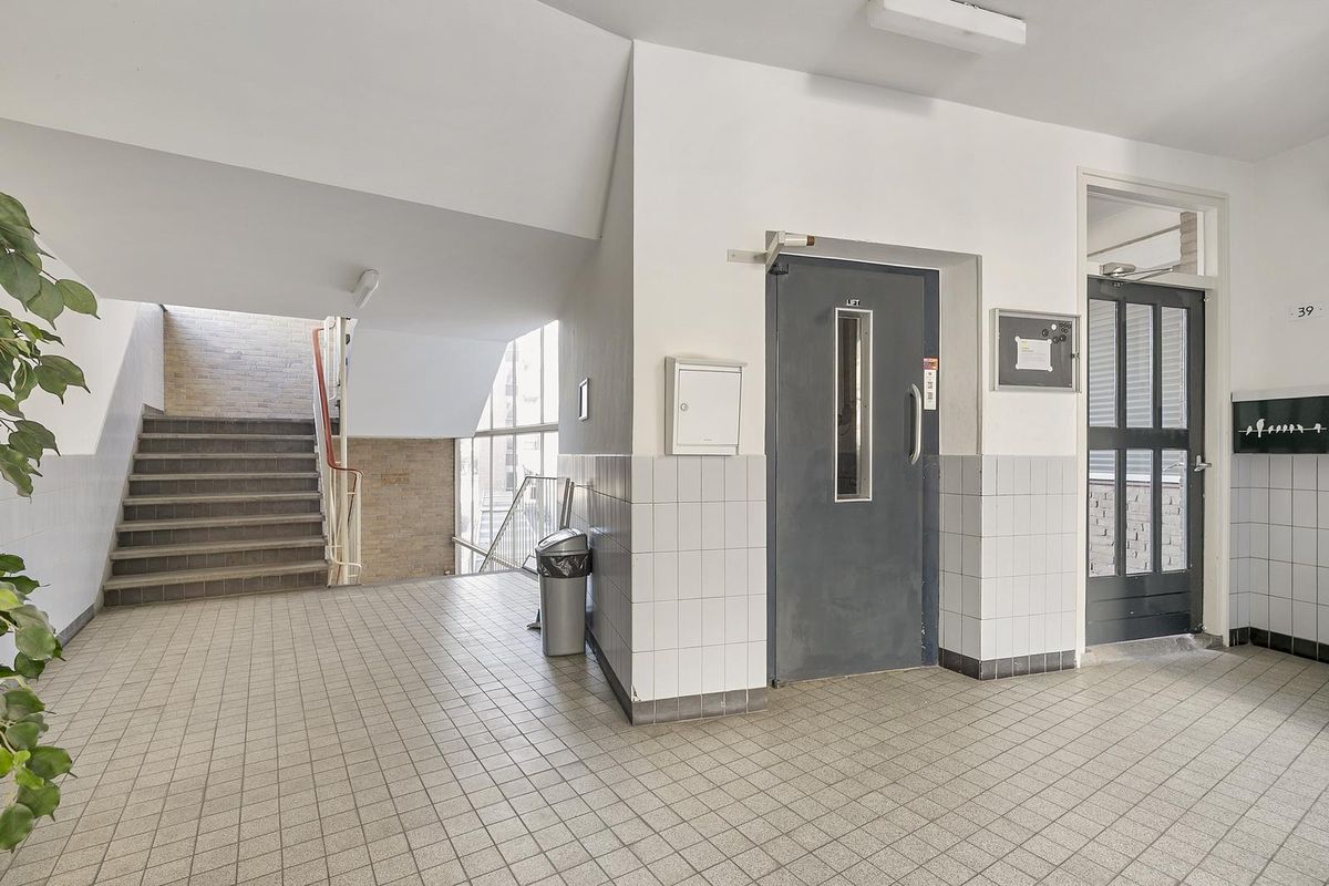 Het complex heeft een gezamenlijke entree met bellentableau en toegang tot de bergingen. Vanaf hier neem je de lift of trap naar de zevende verdieping, waar jouw appartement zich bevindt.