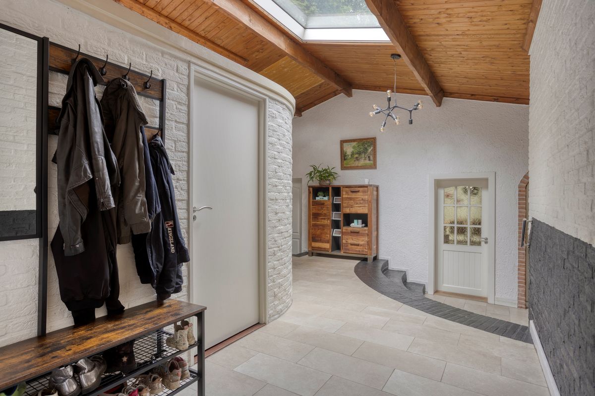 Bij binnenkomst betreedt u de woning via een royale hal die direct de ruimtelijkheid van de bungalow benadrukt. De woning heeft een speels karakter met enkele hoogteverschillen, wat zorgt voor een prettige, dynamische indeling. De royale woonkamer is bijzonder licht door de grote raampartijen die een prachtig uitzicht bieden over de paardenbak en de omliggende landerijen. Een sfeervolle gashaard vormt hier het warme middelpunt, waardoor het zowel overdag als ’s avonds heerlijk vertoeven is. De ruime woonkeuken vormt het hart van het huis en kan geheel naar eigen smaak worden gemoderniseerd, waardoor u hier een sfeervolle leefruimte kunt creëren die past bij uw persoonlijke stijl. De woning beschikt over vier royale slaapkamers en drie badkamers. Tevens is het kantoor ook te gebruiken als slaapkamer. Dankzij de praktische indeling zijn er tevens uitstekende mogelijkheden voor mantelzorg of het realiseren van een gelijkvloerse, levensloopbestendige woonopzet.