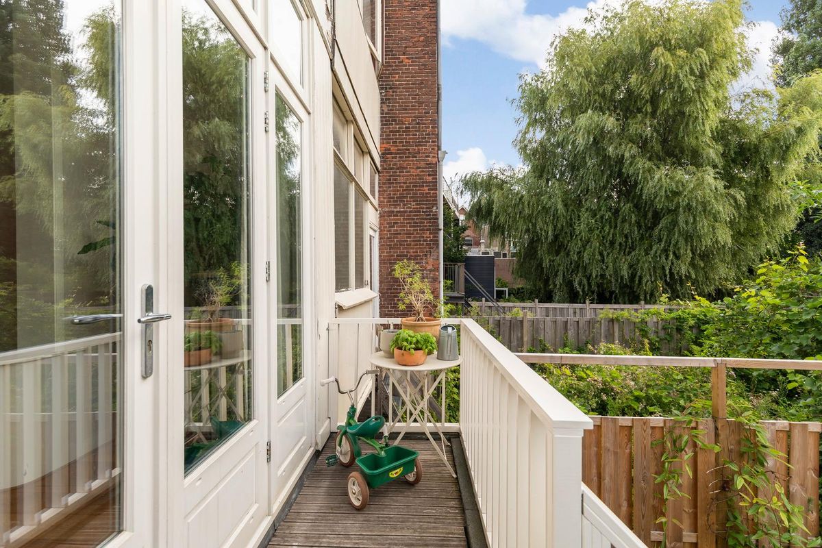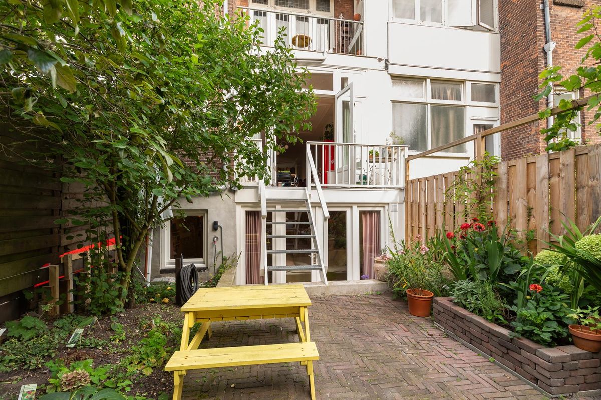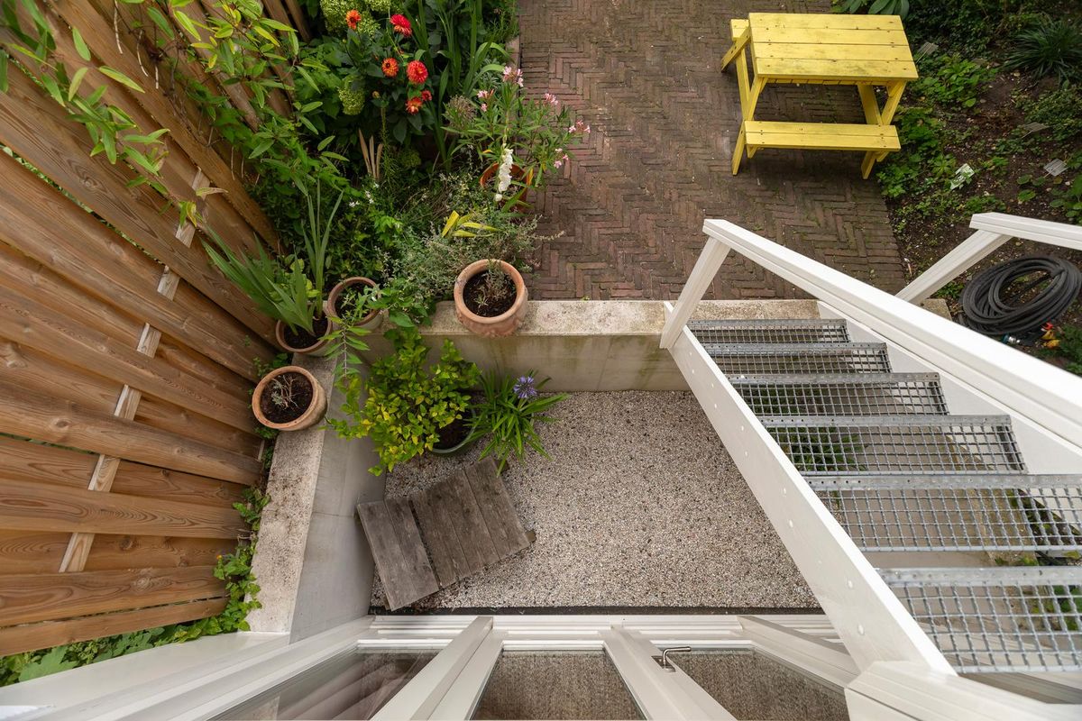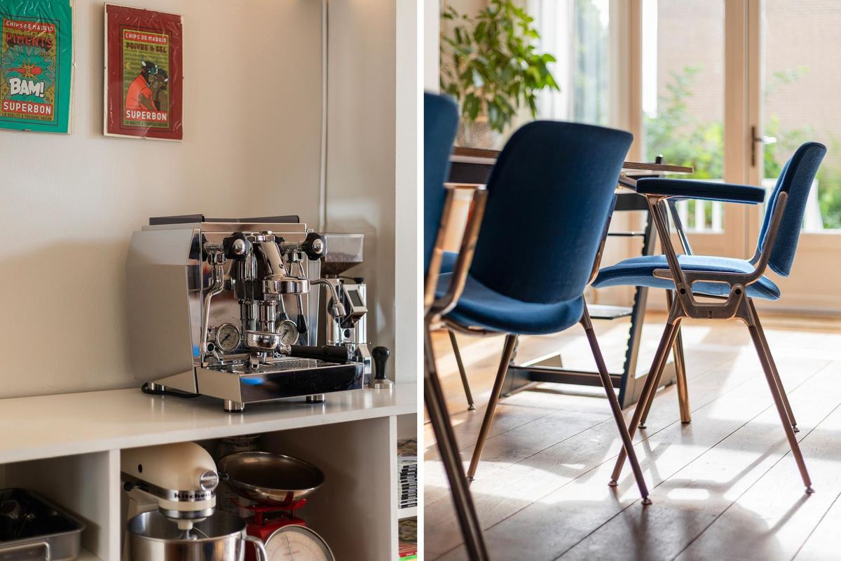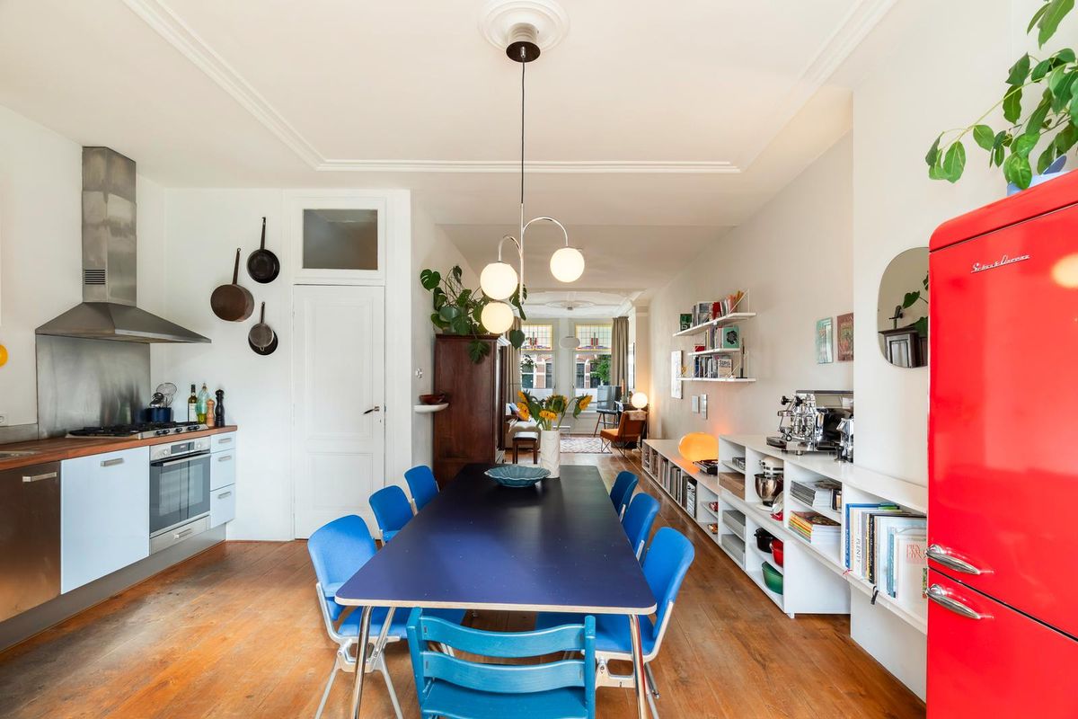 Hal/entree met tochtportaal, toilet, kast en toegang tot de woonkamer. Het woongedeelte is gelegen aan de voorzijde van woning. Door de grote raampartijen treedt er een mooie en natuurlijke lichtinval de woning binnen. Met een lengte van ruim 12 meter lang en een plafondhoogte van bijna 3 meter hoog voelt de kamer ontzettend ruimtelijk aan en is er voldoende plek voor een riante zit-en eethoek. Ook de originele details zoals de schouwen en de plafondlijsten geven de ruimte veel sfeer en karakter. De open keuken staat in directe verbinding met het eetgedeelte, waardoor je tijdens het koken in contact kunt blijven met je gezelschap. De keuken beschikt over diverse inbouwapparatuur, zoals een 5-pits gasfornuis, afzuigkap, oven en vaatwasser. Vanuit de eetkamer bereik je de serre, waar je heerlijk overdekt kunt genieten van het prachtige uitzicht over de tuin. Ook vanuit hier bereik je de ruime berging (met extra wastafel), erg handig voor extra opbergruimte. Grenzend aan de serre is er een terras, met een kleine trap naar de lager gelegen tuin. De tuin is gelegen op het zuidoosten, waardoor je hier een groot gedeelte van de dag van de zon kunt genieten.