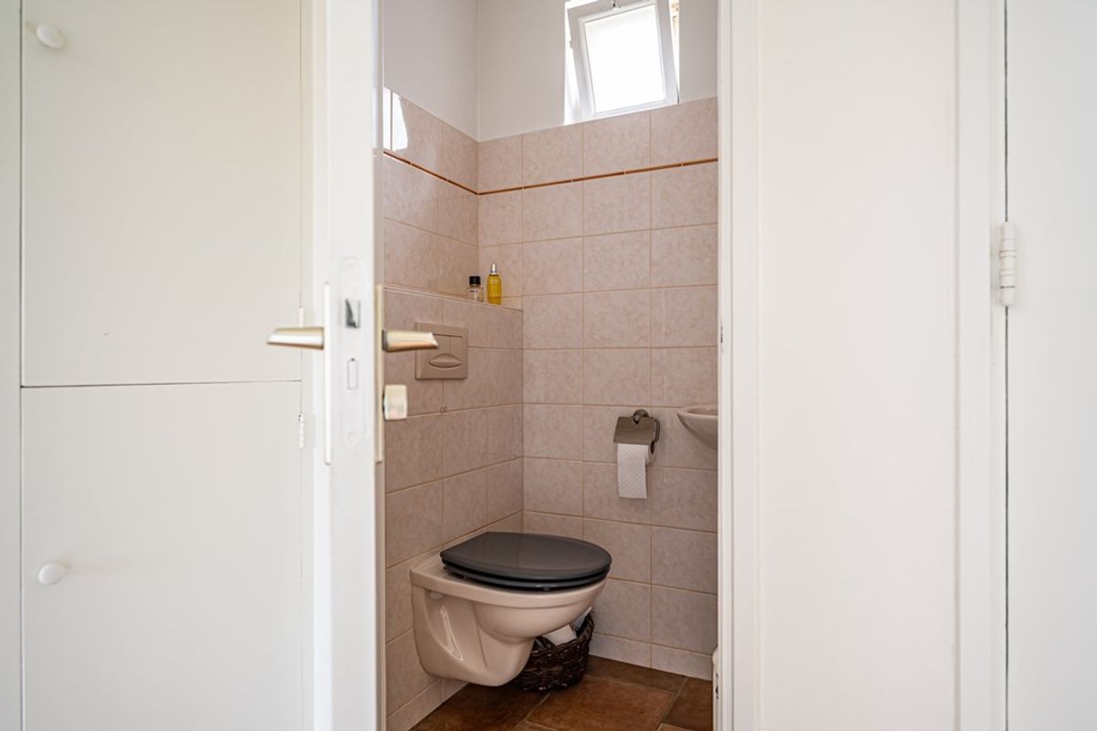 • Entree/hal met garderobe, meterkast en modern hangtoilet met fontein.