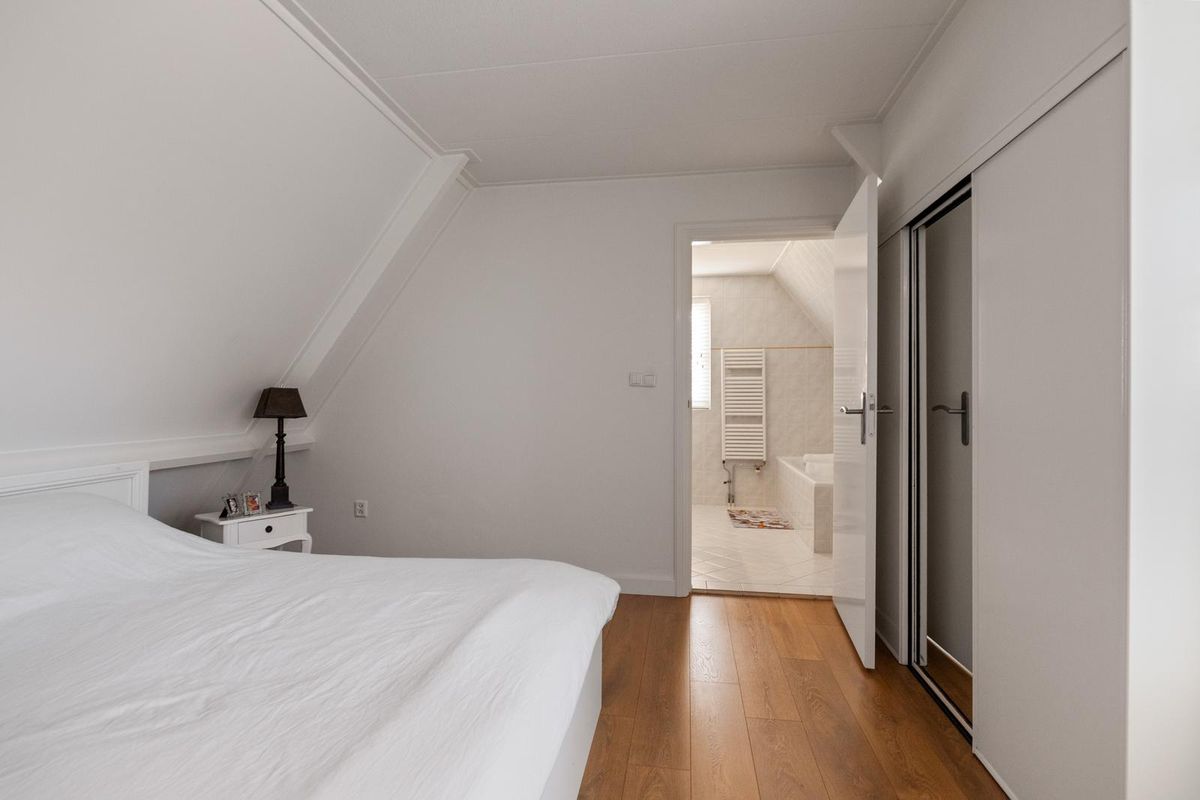 Trapopgang, overloop, toegang tot vier ruime slaapkamers en een badkamer met douche, toilet en wastafel. De masterbedroom heeft een badkamer en-suite met een ligbad, toilet, douche en dubbele wastafel. Op de overloop heeft u toegang tot de bergzolder middels een vlizotrap voor extra bergruimte.